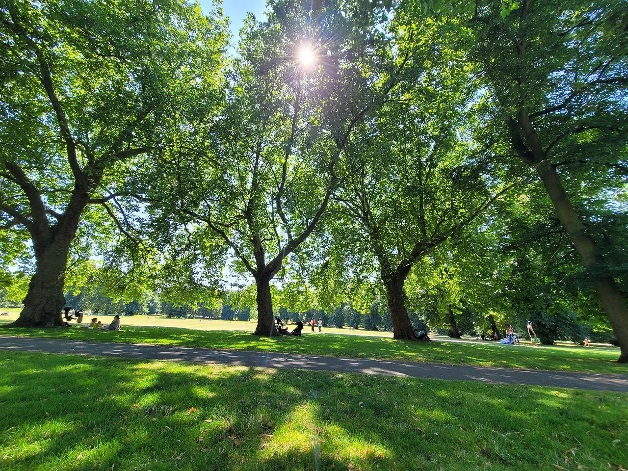 배도 부르고 슬슬 산책 겸 그리니치 공원으로 갔다. 오랫동안 자리를 지켰을 나무들이 정말 컸다. 높기보단 넓은 나무들이 풍부한 그늘을 만들어줬다. 한국에서부터 들고 간 돗자리의 쓰임이 시작됐다.