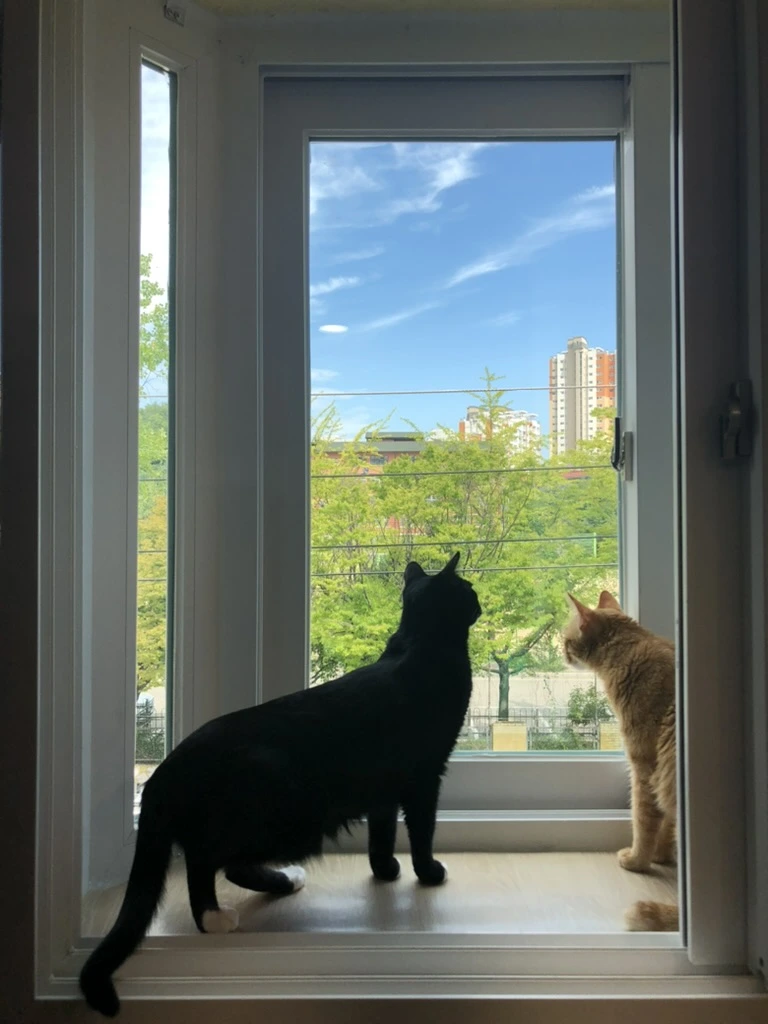 그럼에도 정말 좋았던 건 반려인과 화목함을 지키려 애썼던 거다. 괜찮아. 우린 화목하니까 그거면 된다는 말로 끈끈하게 붙어 잘 버텨냈다. 학교 앞이라 방과 후 아이들이 깔깔거리는 소리도 좋았고, 야산이 붙어있어 새 소리가 많이 나서 좋았고, 창문마다 작은 공간이 있어 고양이들이 밖을 내다볼 수 있어 좋았다.