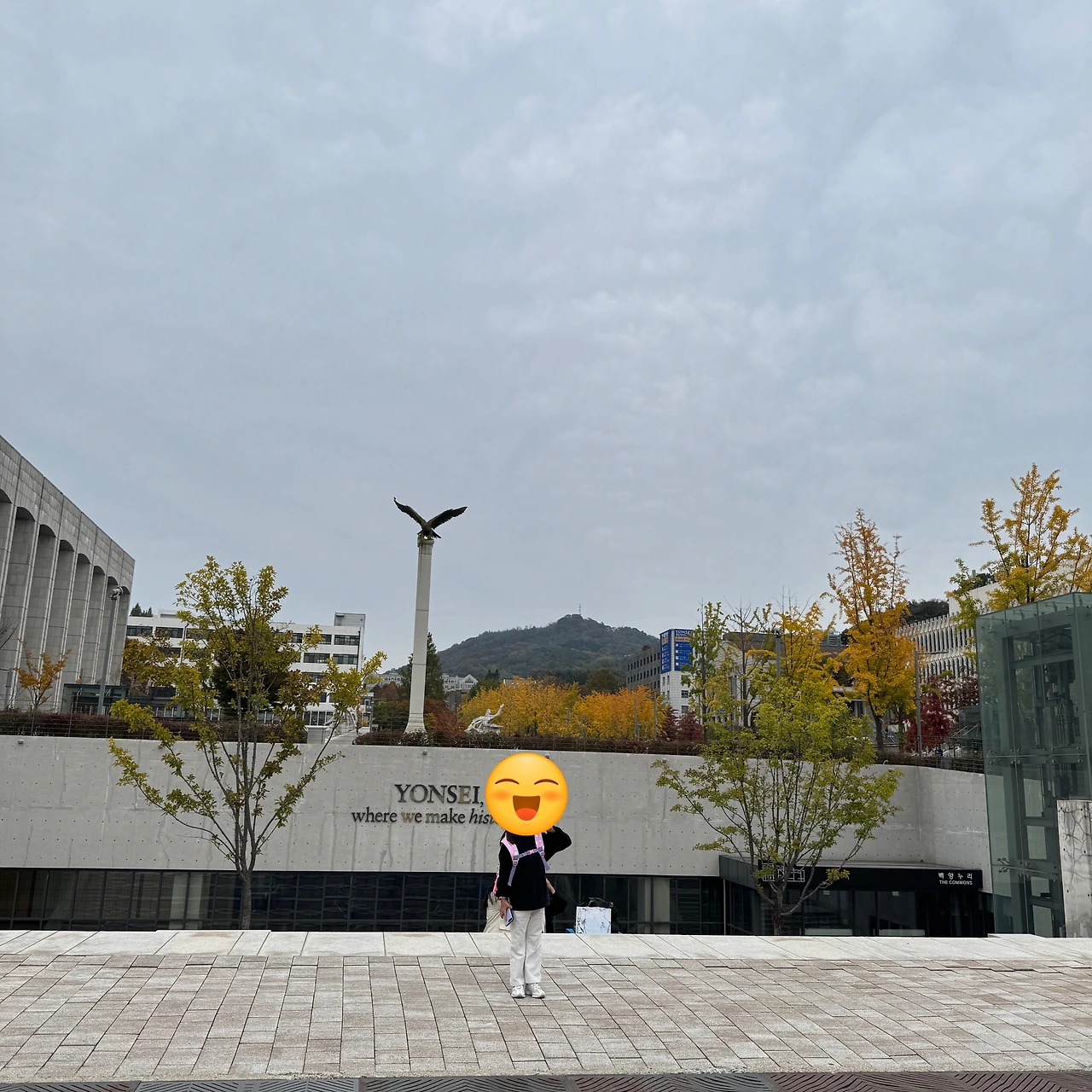 할 일을 다 마치고 나니 그제서야 긴장이 풀렸다. 그래도 별 탈없이 끝나 다행이었다. 아까 왔던 본관 뒤편길로 나와 제제와 이런저런 이야기를 나누며 캠퍼스를 거닐며, 여유 있게 연세대학교를 구경했다. 독수리 상 앞에서 사진도 찍고, 그 옆에 있는 흔들 그네에도 잠깐 앉아 주변을 구경했다.