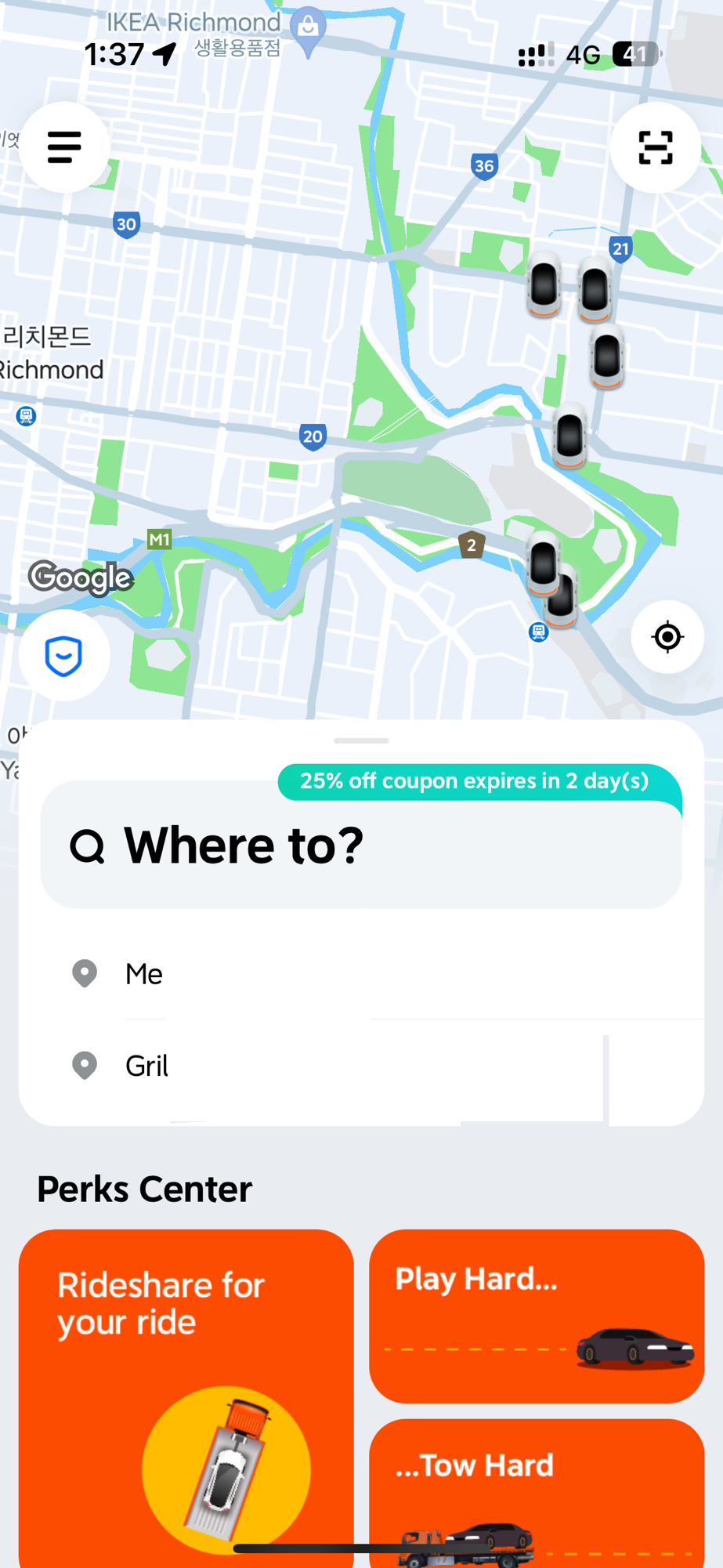 앱을 다운로드하여 실행한 다음, 회원가입을 하니 첫 10번의 탑승 동안은 요금의 25%를 할인해 주는 행사가 있었다. 내가 미리 발급받아 온 국내 하나은행의 해외여행전용카드를 등록하니 우리의 카카오택시처럼 손쉽게 앱으로 결제가 가능했다. 앱으로 미리 원하는 목적지인 '멜버른 동물원'을 입력한 후 기사를 호출했다. 실시간으로 주변의 있는 디디 기사분 중 한 분이 내 콜을 받아 이동하고 있다는 걸 앱을 통해 확인이 가능했다. 그렇게 도착한 차량을 타고 원하는 목적지로 편리하게 이동할 수 있었다.