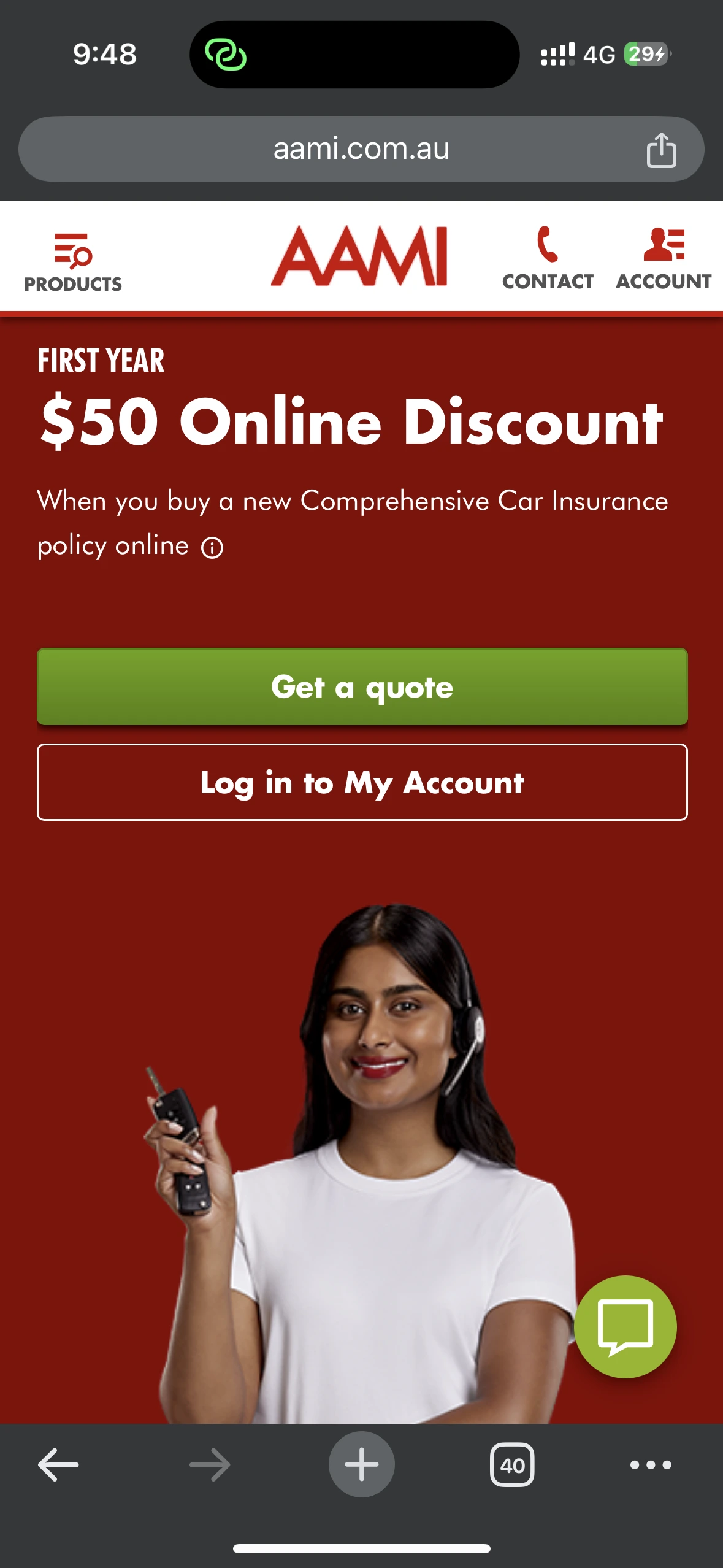 중고차를 구입하고 차량등록을 했다고 무작정 운전을 할 수는 없다. 물론, 아주 아주 기본적인 보험은 들어있는 상태지만 당연히 많은 부분 적용받을 수 있는 Comprehensive Insurance를 가입해야 한다. 호주에도 여러 차량 보험업체가 있지만, 나는 AAMI라는 업체를 추천받았다. 여기도 마찬가지로 나의 정보를 입력하여 계정을 새로 만들고 'Get a quote'(견적을 받는다는 뜻)로 들어가 Car Insurance라는 부분으로 견적을 받는다.