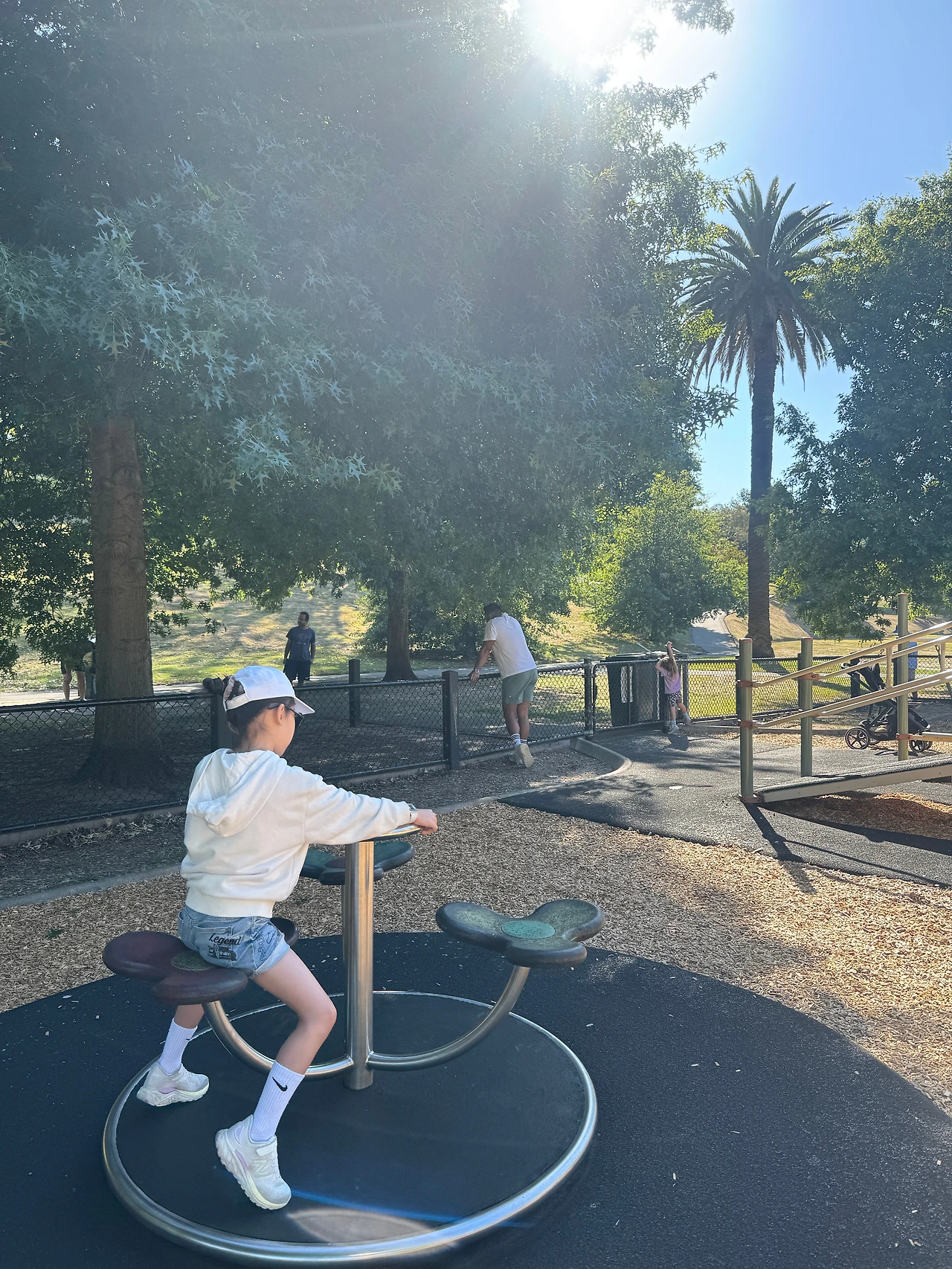 넓은 잔디밭 옆으로는 아이들이 놀 수 있는 놀이터가 있었는데 제제와 나는 그 놀이터를 발견하고 그쪽으로 향했다. 놀이터 주변으로 울타리가 쳐져 있었고 입구 또한 닫혀있었는데, 아이들이 노는 곳으로 개들이 들어올 것을 방지한 울타리였다. 호주는 주거지 기본이 주택이라서 그런지는 모르겠지만, 대형견을 기르는 사람들이 무척 많았다. 심지어 공원 안에 개를 산책시킬 때도 목줄을 매지 않고 자유롭게 풀어놓는 경우를 많이 볼 수 있었다.