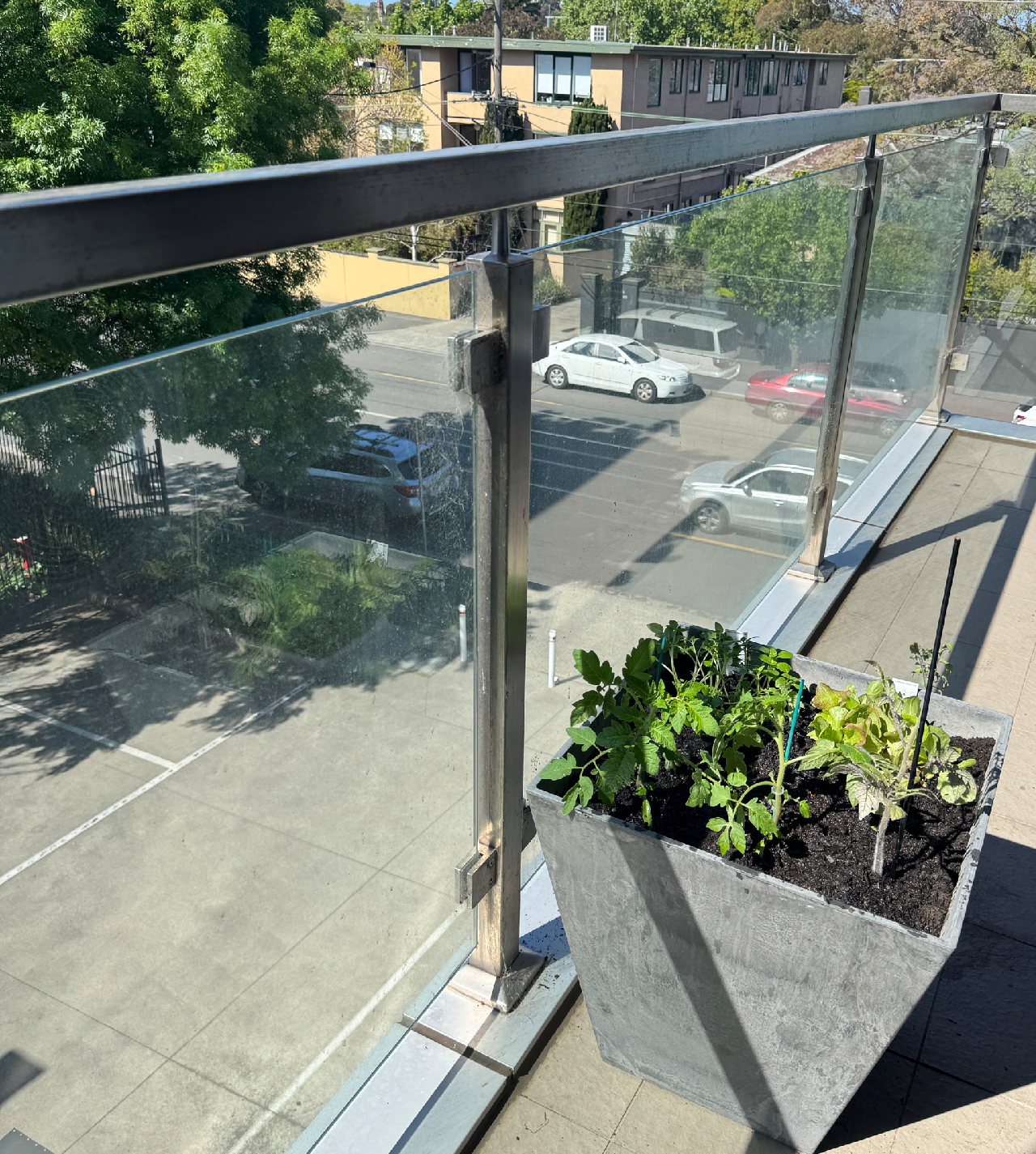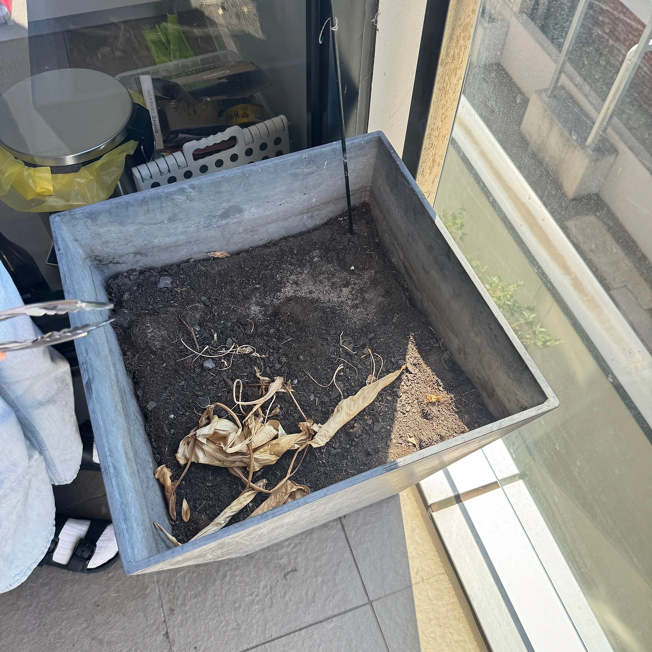 지난 주말엔 정말 눈이 부실정도로 햇살이 좋고 공기도 따뜻했다. 아이가 지난 FATHER'S DAY에 아빠에게 준다고 학교에서 사 온 토마토 모종이 있었다. 그 모종이 점점 자라고 있어서 햇빛을 더 받으면 좋을 것 같아 발코니에 내놓으려다가도 최근 바람이 세게 불어 모종 화분을 함부로 내놓기가 어려웠다. 그러던 중 발코니에 잠자고 있던 큰 화분이 눈에 들어왔다. 이전 세입자 중 한 사람이 두고 간 물건 같았는데, 내가 쓸 생각은 없어서 놓은 자리 그대로 둔 채 신경 쓰지 않고 있던 터였다. 화분 위를 덮고 있던 발매트를 살짝 걷어보니 식물을 심었던 흔적만 남아있고 흙이 일부 남아있었다. 어쩌면 이를 활용해 볼 수 있을 것 같다는 생각이 들었다.