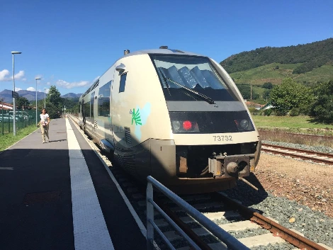플랫폼에서 10여분을 기다리니 생장으로 가는 기차가 도착한다. 도착하는 기차를 보니 좀 실망스럽다. 시내를 돌아다니는 경전철도 아닌데 달랑 두량이다.