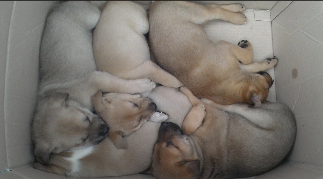 활달한 두 마리는 박스를 기어 나오려고 하고, 나머지 애들은 서로 엉켜 잠들어 있었다.