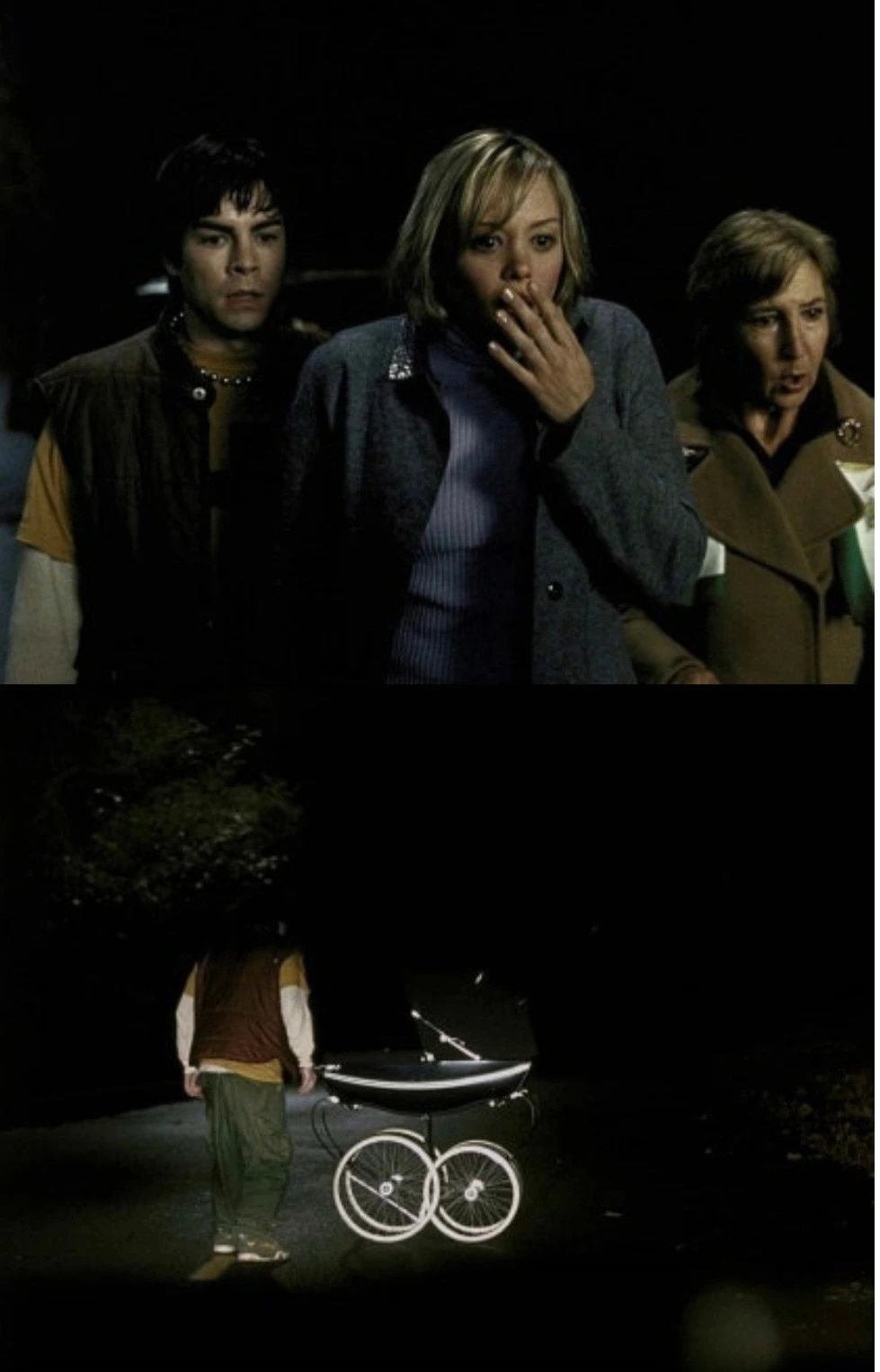 이때 차에 남아있던 소복 여자는 메리언의 남친 브레드에게 보에 싸인 아기를 보여주는데,