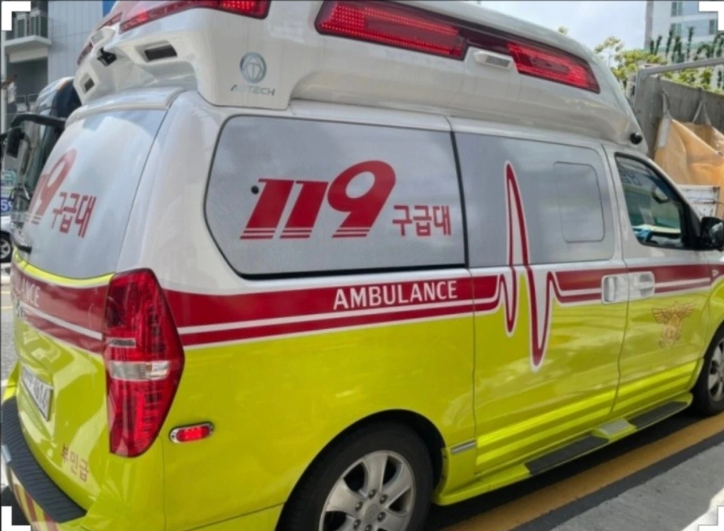 쓰러진 라이더 옆 도로 배수구 위에 서서 구급차를 기다렸다.