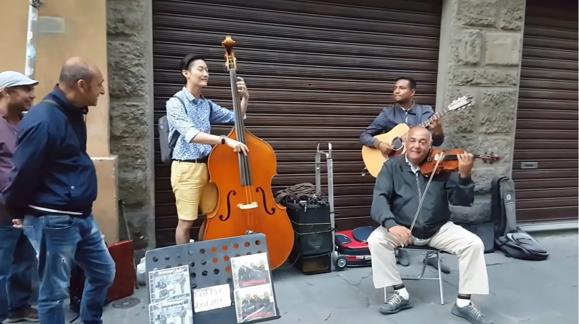 콘트라베이스 연주자 최준혁씨가 이탈리아 여행 중에 길거리 악사들과 즉흥 연주를 펼치는 영상이다. 6년 전 업로드 된 이 영상은 조회수 2천만회를 기록하고 있으며 전세계인에게 사랑을 받고 있다. 이 영상을 보기 위해 재채기가 여기저기 들리는 요즘 같은 때 철새마냥 찾아오는 사람들이 많다.