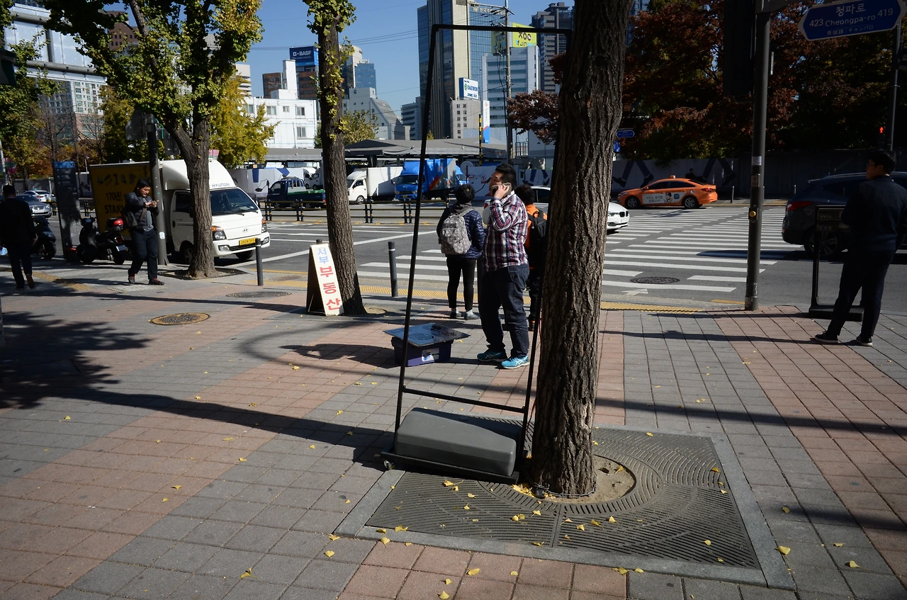 동일한 공간, 동일한 사물 등 하나의 무언가를 요모조모 뜯어보는 건 흥미롭다. 요렇게도 찍어보고 조렇게도 찍어보고 어둡게도 찍어보고 밝게도 찍어보고 하다 보면, 그 흔한 맨홀 뚜껑이 살아생전 처음 맞닥뜨리는 괴생명체 마냥 낯설었다가 매우 근사한 조형물처럼 보였다가, 그 인상이 이리저리 널을 뛴다. 빛이 얼마나 어떻게 비쳤느냐에 따라서도 분위기가 천양지차다. 세상은 참 여러 얼굴을 갖고 있다.