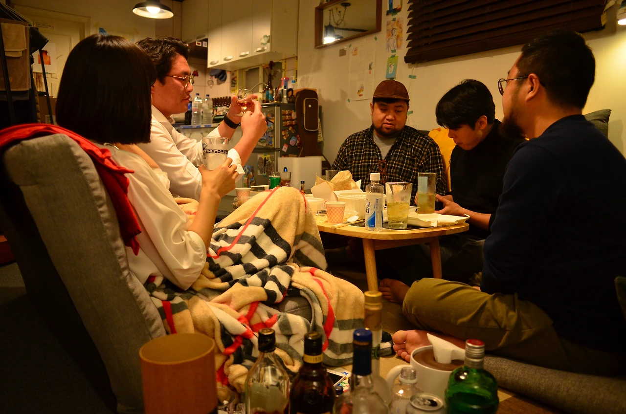 어쩌다 시작된 것인지는 가물가물하지만, 이런 영화식당이 이례적으로 모임을 계획하게 됐다. 최근에 새로 합류해 팀을 꾸린 멤버도 있겠다 연말도 다가오겠다, 게다가 작업실도 있으니 한번 뭉치자는 말이 단톡방에서 나왔다. 결과는 반타작. 북적북적을 대비할 뻔했으나 여섯 명만 옹기종기 둘러 앉았다. 그래도 충분히 시끌벅적했다.