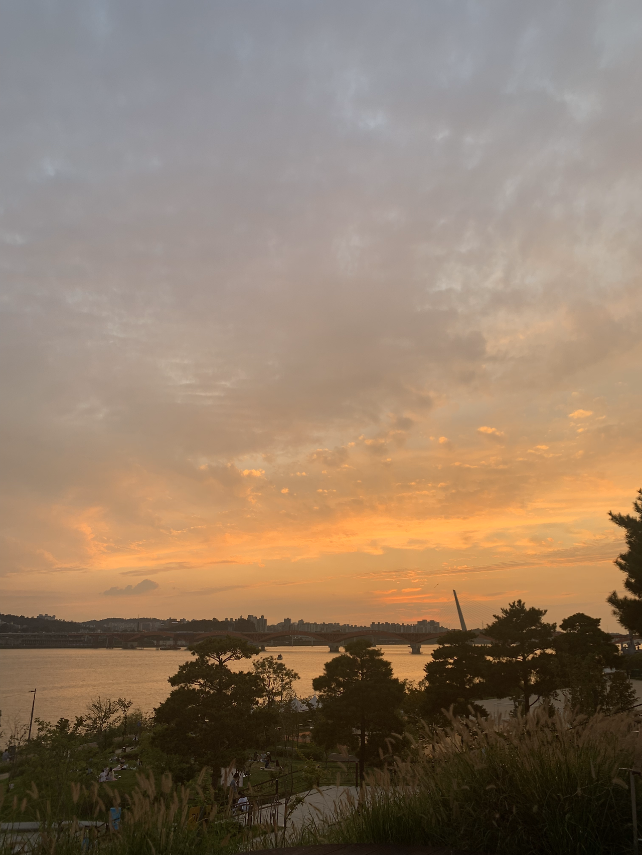 오늘 마주한 매직 아워도 굉장했다. 망원 한강공원의 계단에 걸터앉아 세상의 색이 변하는 것을 감상했는데, 2019년 하반기의 시작을 격려라도 하려는 건지 뭔가 신이 있는힘껏 기교를 부려주는 듯한 느낌이었다. 그래서였는지 대화를 나누다가도 자꾸만 말을 멈추고 하늘에 시선을 두게 됐다. 신께서 이리 용을 쓰시는데 주목해드리는 것이 인간 된 도리 아니겠는가. 종교는 없다만.