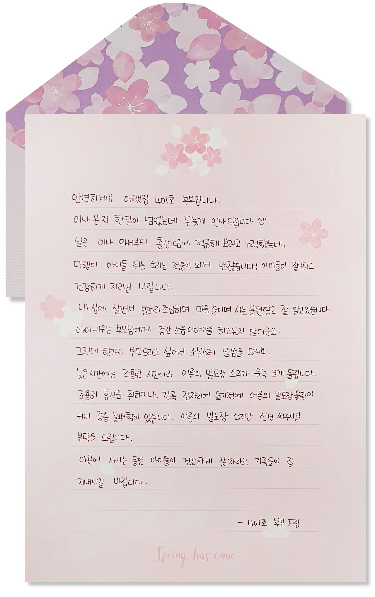 손 편지로 층간소음 갈등 해결 (2023년 / 동탄)