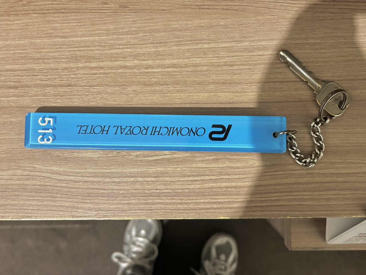 ‘513’이 인쇄된 아크릴 열쇠고리. 구둣주걱 만한 이건 내 호텔방 키다. 이 호텔은 카드키가 아닌 열쇠를 사용하는 아날로그 감성을 추구했다. 거추장스러워서 여행 중에는 떼고 다니기로 했다. 잃어버리지 않게 조심해야지.