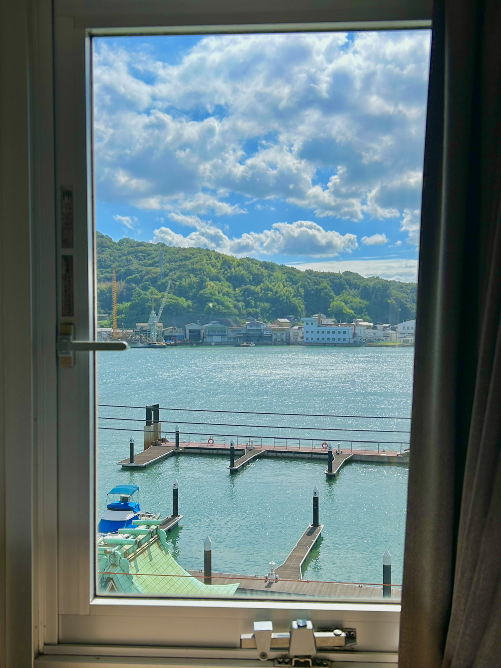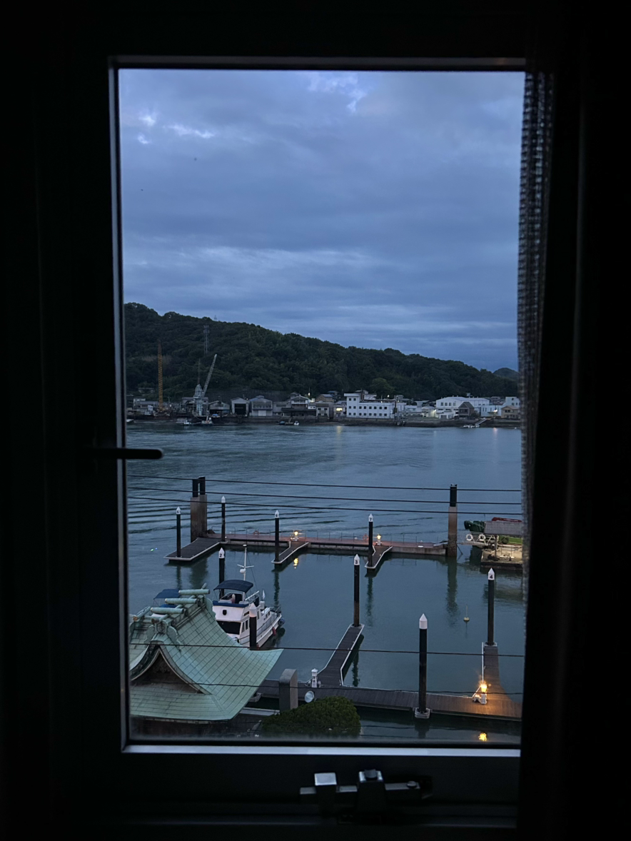 암막 커튼을 활짝 걷었다. 밤의 오노미치는 사라지고 새벽 공기 가득한 오션뷰가 선명하게 들어왔다.