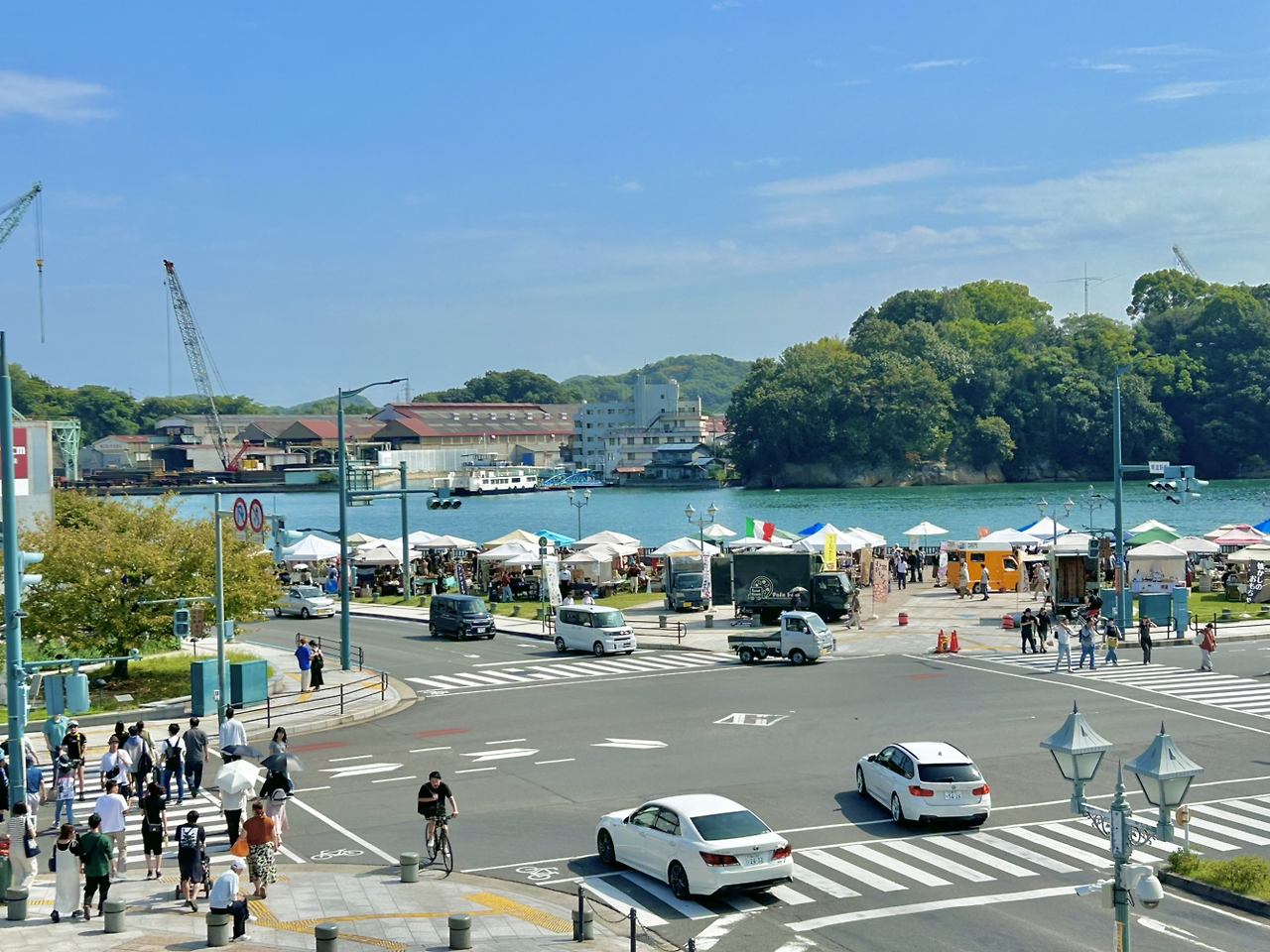 카페를 나오자 다시 후끈한 열기에 휩싸였다. 도로 건너편, 역 앞 광장에 벼룩시장이 열렸다. 오노미치는 고즈넉한 마을이다. 이렇게 인파가 몰린 건 처음 본다. 양산을 접고 벼룩시장을 둘러보았다. 보물 찾기를 기대했으나, 건질만한 건 없었다. 광장 옆 해안 산책로로 향했다.