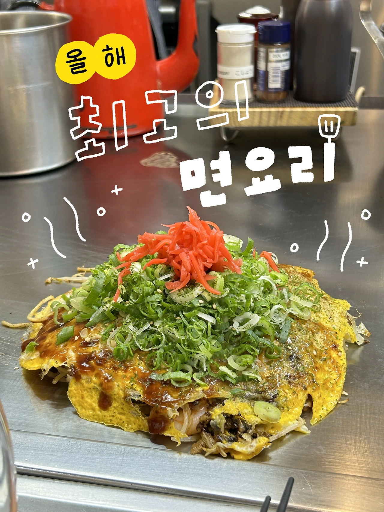 오픈한 지 얼마 지나지 않아 ㄱ자로 둘러앉는 좌석이 가득 찼다. 나는 해산물 오코노미야끼로 주문했다. 가득 찬 좌석만큼 주문도 몰려들었다. 사장님은 철판에 오꼬노미야끼를 묘기 부리듯 만들었다.