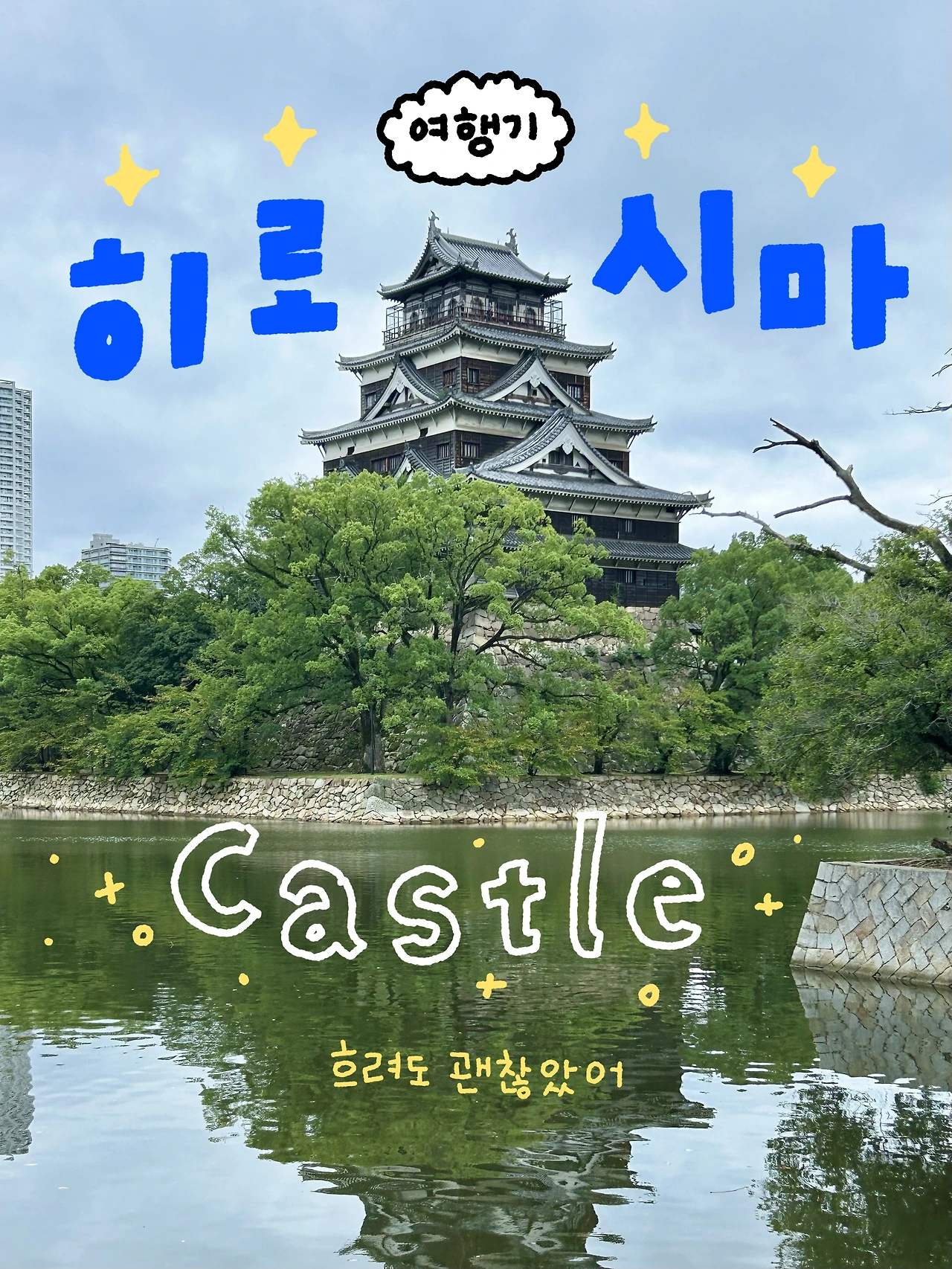 히로시마 성을 배경으로 사진을 찍기 위해 성 건너편으로 이동했다. 최적의 장소를 찾았는데 오가는 사람이 전혀 없다. 있어도 자전거 타고 쌩- 스쳐 간다.