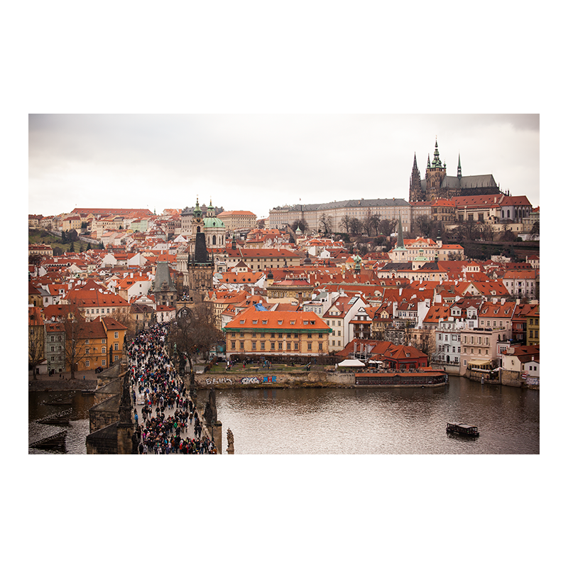 프라하 성에서 바라본 프라하 구도심의 전경. 빨간 색의 지붕들이 매우 매력적이다.