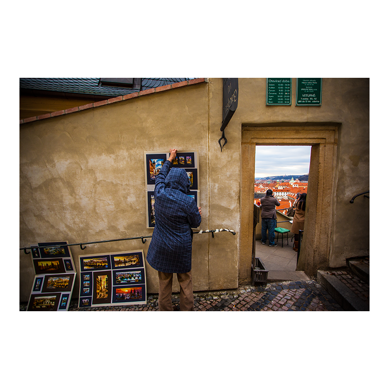 프라하 성에서의 한 장면. 관광객들에게 끝내주는 광경만 모아서 사진을 팔고 있는 사람.