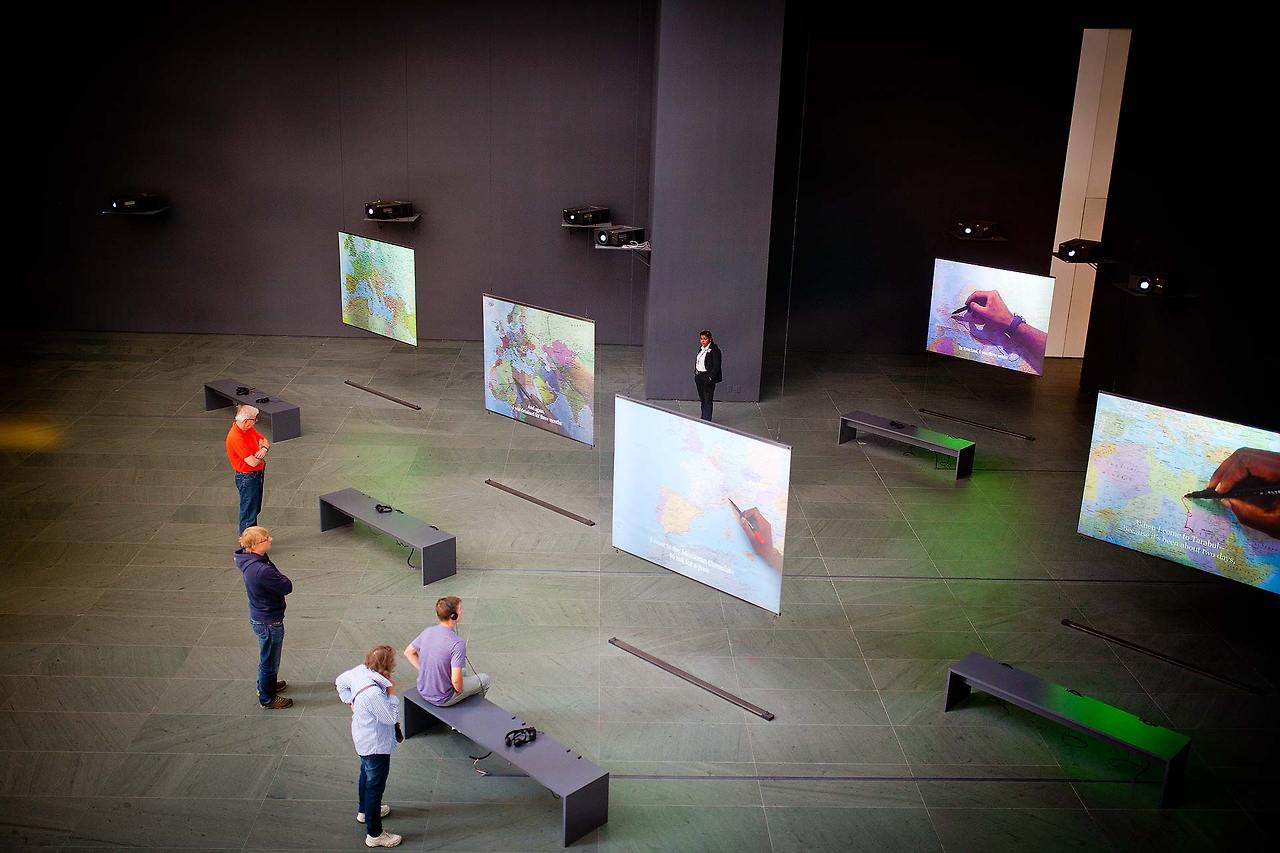 유리로 된 출입구와 나선형의 계단과 엘리베이터는 파리의 루브르 박물관에 입장하는 느낌이었다. 실제로 저 디자인의 모티브를 얻은 게 루브르 박물관이라고 하니 건축가의 의도는 정확하게 전달된 것이라고 볼 수 있겠다.