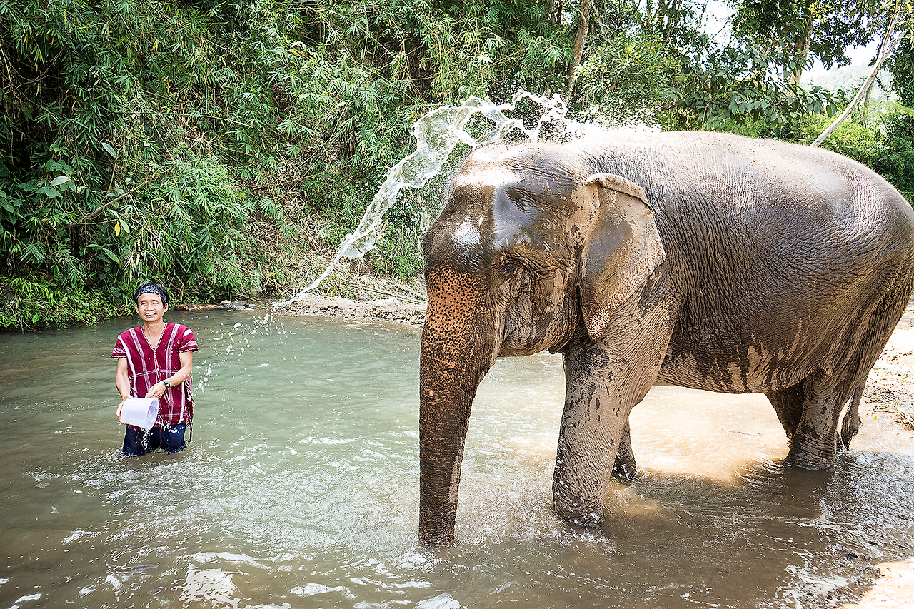 코끼리와의 교감은 코끼리 목욕봉사(?)를 통해서도 할 수 있다. 물론 같이 물장구를 치면서 코끼리와 놀아보는 느낌이긴 하지만, 코끼리가 은근 덩치가 크고 물장난을 좋아해서 순식간에 물벼락을 맞는 경우가 많다.