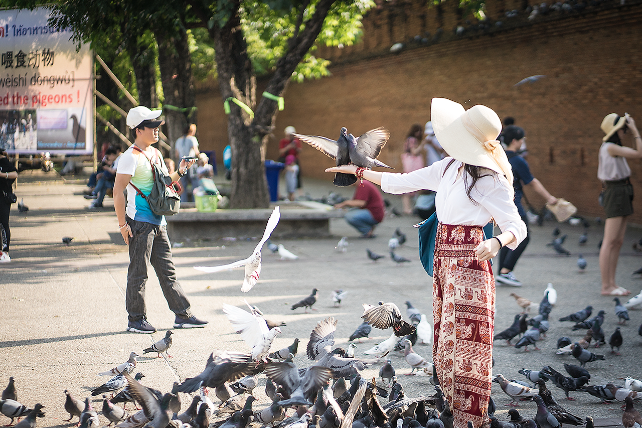 타패 게이트는 일반적으로 치앙마이의 동쪽에 위치한 랜드마크라고 볼 수 있는데, 위의 사진과 같이 사람과 새들이라고 하지만 실제론 닭둘기들이 함께 노니는 장면을 쉽게 볼 수 있다. 사실 실제 가보면 평화로운 건 절대 아니고, 비둘기가 너무 많아서 조금 무서울 정도.