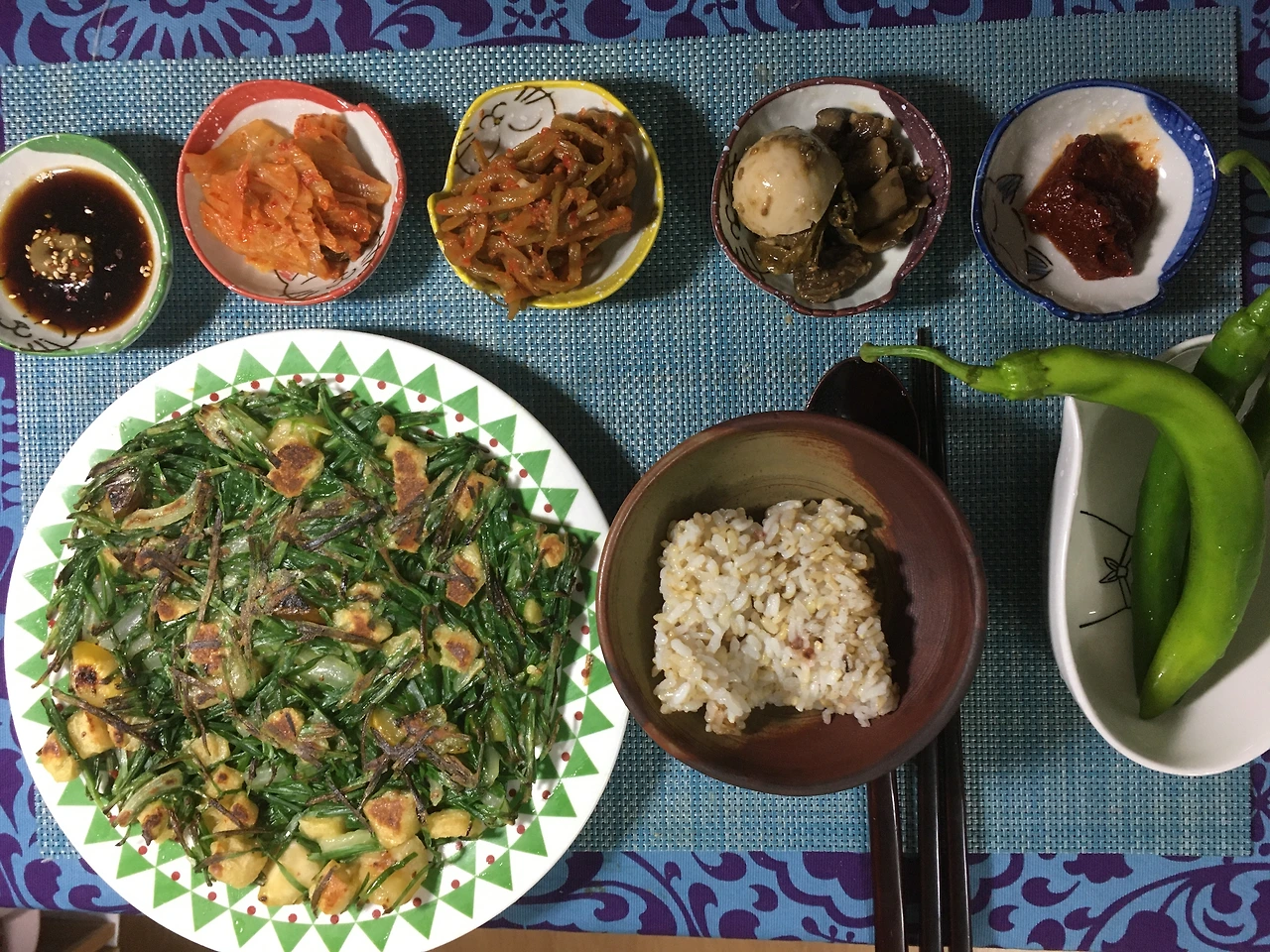 집에서 저녁밥을 먹을 때도 신선채소를 곁들인다. 이번주는 부추와 상추다. 지난주엔 양배추였다. 간장과 고춧가루로 겉절이를 무치기도 하고, 월남쌈 소스와 와사비를 섞어 샐러드드레싱을 만들기도 한다. 집에 있는 걸로 대충 적당히 만든다. 부추전을 만들 때는 냉동유부 몇 장과 엄마가 보내주신 참외장아찌를 부추전 반죽에 같이 넣었다. 소금간이다 생각하고 짠지를 넣으면 간이 맞을 것 같았다. 맛있었다.