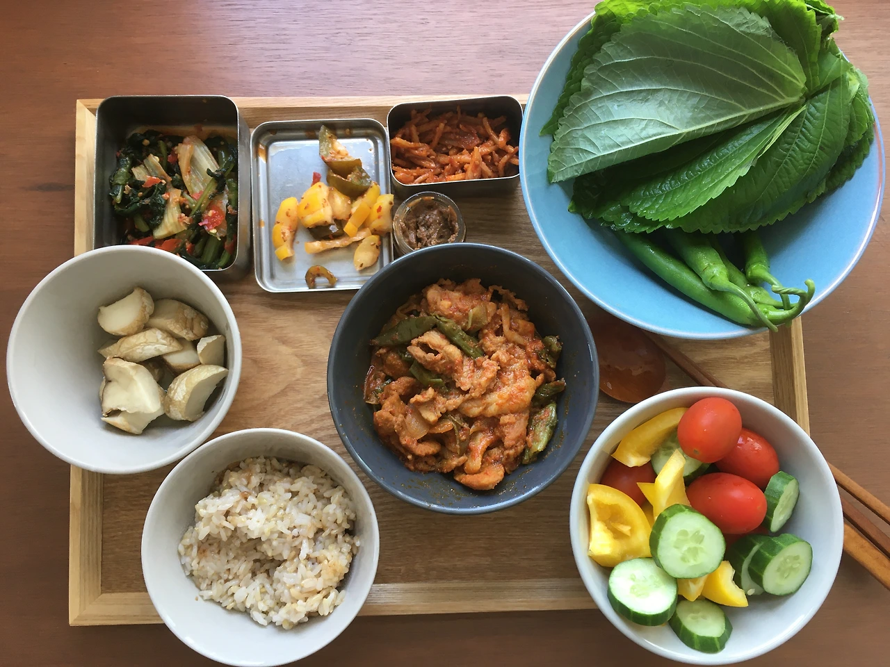 매끼니 신선한 채소를 먹어야 한다는 기본 원칙에 충실하기 위해서 상추, 부추, 깻잎, 오이고추도 샀다. 제육볶음을 싸간 날에는 쌈채소와 고추를 더 챙기기도 했다.