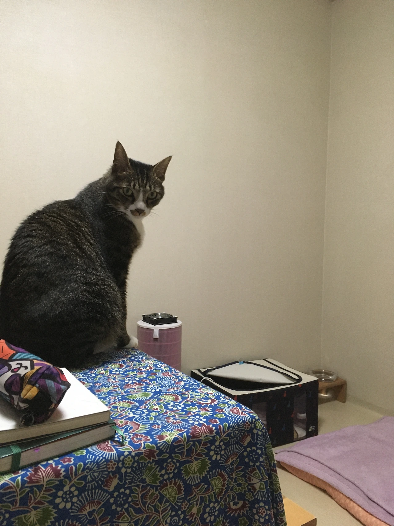 생각해보니 지는 2주 정도, 가지를 훈련시킨답시고 저녁에 다른 방에서 재운 게 스트레스 상황이었던 거 같다. 새벽 두 시나 세 시, 어쩔때는 두 시에 한 번, 네 시에 한 번 자기 마음대로 나를 깨워서 숙면을 취할 수가 없는 상황이 너무 힘들었다. 잘 때는 인간 침실에 못 들어오게 하는 집사도 있다고 하는데 이미 우리 가지는 3년 간 자기 마음대로 집안 구석구석을 다니던 고양이인데 그게 될까. 우리집은 잠금장치도 마땅치 않고 문 앞에서 문을 긁고 들어오고 싶다고 앙앙 우는 고양이를 내가 외면할 수 있을까. 전에 내 방 미닫이문을 가지가 손쉽게 열고 들어왔던 생각도 났다. 그래도 다른 집사가 자기는 어린 인간 아기도 어느 정도 크면 혼자 다른 방에서 재우는 것처럼 고양이도 할 수 있다고 용기를 줘서 시도해보기로 했다.