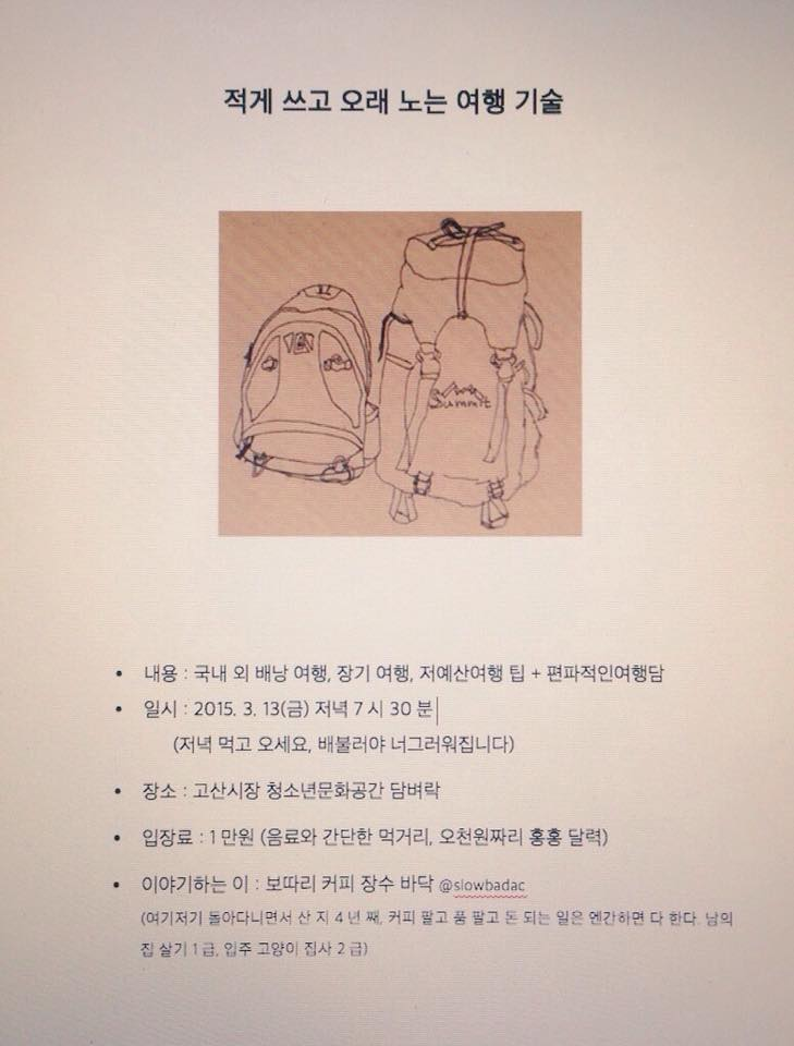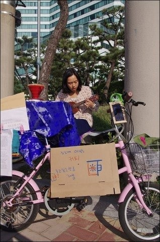 매일매일 여행자와 대전 친구들에게 커피를 내려 팔았다. 매출을 더 높여보려고 후라이팬에 생두를 로스팅해서 원두도 팔고 주말 장터에도 나갔다. 수입이 많지는 않았지만 산호여인숙에서 월 5만원을 내면서 살았기 때문에 괜찮았다. 친구와 대형마트 의류판매 행사장에서 아르바이트도 해보고, 연극 연습 시간에 배우들의 자녀를 돌보는 일도 했다. 허술하지만 독립출판물도 만들어 판매하고, 커피 케이터링과 축하공연 등 내 삶의 모습 전부를 퍼포먼스 상품으로 내보이기도 했다.