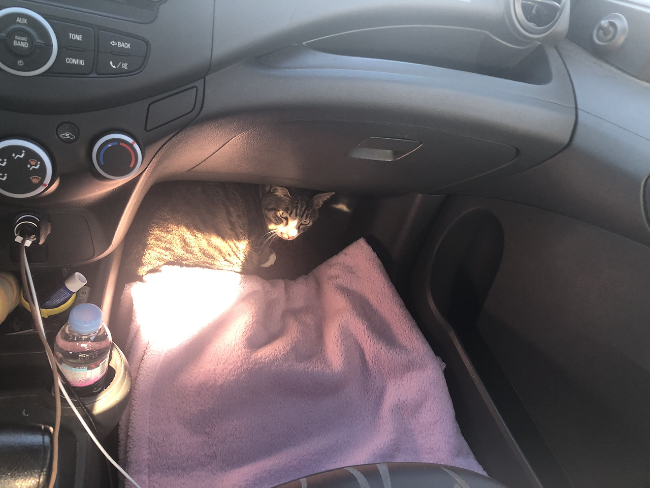 하.. 어떡하지, 이제 출발해야 하는데. 이 상태로 운전하면 안 되겠지? 혹시 될까? 가지는 어렸을 때 산책도 하고 나랑 같이 차를 타고 읍내에 아르바이트로 같이 갔던 고양이잖아. 갑자기 튀어오르거나 그런 적은 없잖아. 혹시 이동장에 넣지 않고 저런 상태로 운전을 해도 괜찮을까. 얌전히 저렇게만 있어준다면 괜찮을 거 같기는 한데... 천천히 가볼까. 고양이 중에는 얌전히 차를 타는 경우도 있다던데 혹시 우리 가지가 그런 고양이일지도 모르잖아. 그래 어짜피 주유는 해야하니까 주유소까지만 가보자! 그래서 천천히 출발했다. 도로에 차가 거의 없는 길이고 잘 아는 동네 길이기 때문에 그러면 안되지만 엄두를 내본 거다. 가지는 꽤 얌전했다. 인간이 내리고 타느라 문이 열리는 순간 가지가 뛰쳐나갈 수도 있으니 온 신경을 집중해서 주유소에 도착해서는 후다닥 내리고 다시 탈 때도 가지를 보조석으로 유인해놓고 재빨리 운전석으로 타기 같은 방법을 썼다. 오, 혹시 더 멀리 갈 수도 있으려나. 절대 절대 그러면 안 되지만 가지가 보조석 바닥에 웅크리고 앉아있는 상태로 주유소를 나섰다. 진짜 정말 절대 그러면 안 된다.
