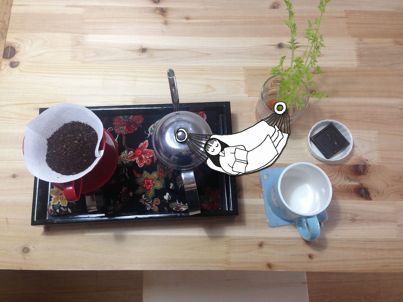 탁자를 놓을 위치와 방향을 고민해 자리를 잡았다. 주워온 나무라 딱 원하는 크기와 모양은 아니었지만 자급생활이란 형편에 맞추는 거니까. 직접 후라이팬에 볶은 커피콩으로 천천히 커피를 내려, 쓰고 남은 나무를 주워 직접 만든 탁자에서 마신다. 직접 만들거나 할 줄 아는 게 많아져서 최소의 소비만 하면서 살게 되면 좋겠다. 자급은 요원하지만 자족은 자신 있다.
