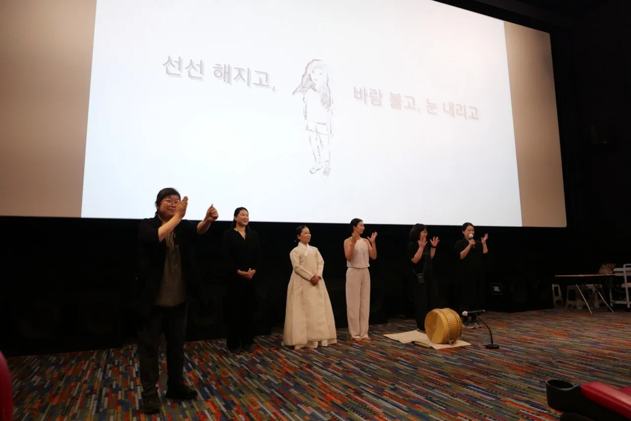 댄스x국악 공연 중에도 우리가 의도한 것과 다른 상황이 발생했다. 계절의 변화를 소리북과 춤으로 표현하되 가사가 있는 노래가 아니니 간단한 문장으로 상황을 설명하고 그를 현장에서 낭독하기로 했었다. 소리북의 진동과 댄서의 몸짓은 들리지 않는 사람에게도 충분히 감동을 줄 수 있었다. 그러나 우리가 ‘간단하게’ 작성한 한국어 문장은 여전히 수어 통역이 필요한 청인의 언어였다.