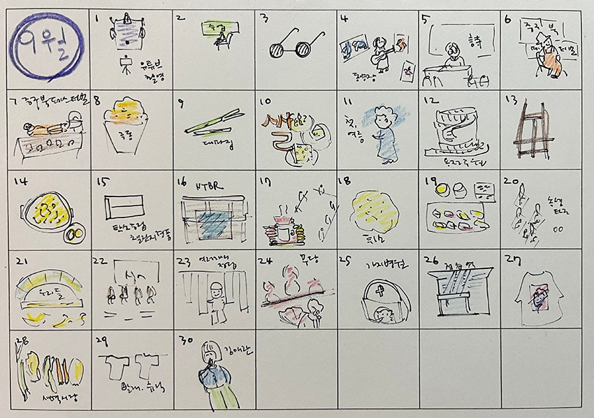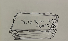 - 집에 있는 물건들의 이야기를 추적해 보고 싶다. 부산에서 친구에게 얻은 반찬통, 경주 시장의 그릇가게에서 산 스텐 그릇, 산호여인숙에서 챙긴 블럭…