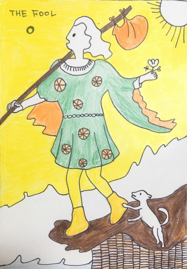 글에 덧붙일 타로카드를 그리고 싶어서 카드를 한 장 뽑았더니 조화로운 결말, 결실을 의미하는 21번 ‘월드’ 카드가 나왔다. 타로를 통해 완주에서 사람들을 만나고, 좋은 기운을 나누며, 함께 어울리는 세계로 나아가게 될 거라는 뜻일 게다. 그런 의미에 나의 희망과 의지를 담아 0번 ‘길 떠나는 바보’ 카드를 그려보았다. 이 여정이 두렵고 벼랑 끝에 선 것처럼 불안하지만 동시에 앞으로 펼쳐질 일들을 기대하는 사람, 쉽지만은 않겠지만 그럼에도 가겠다는 결심을 한 사람, 귀여운 강아지를 길동무로 맞이해 가볍게 출발하는 사람. 그렇게 완주에서의 나의 타로 인생이 펼쳐질 것이다.
