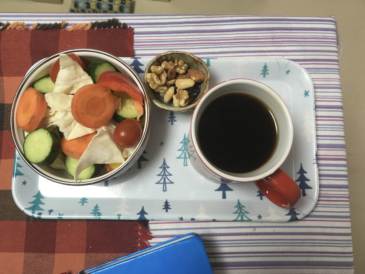 어제 실컷 울고나서 기분이 나아진걸까. 아침에 일어나니 컨디션이 꽤 좋았다. 커피도 내리고 각종 채소도 썰어서 준비했다. 이따 제대로 밥 먹을 거니까 이걸 아침식사라고 하긴 그렇고 커피에 곁들이는 간단한 주전부리. 빵이나 과일 먹으면 좋았겠지만 집엔 오이 당근 파프리카 양배추뿐이라... 일어난 시간은 6시 반. 조짐이 좋다. 다시 아침 일찍 일어나는 사람이 되면 좋겠다.