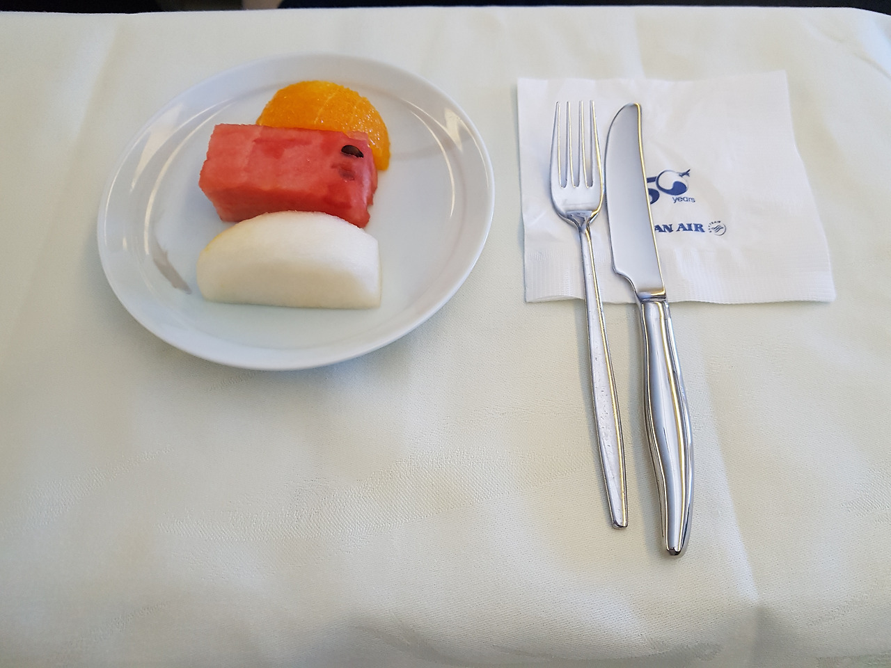 아침 비행기다 보니 간편한 조식이 나오는데, 한/중/양식 3가지 옵션 중에 중식(해산물 & 밥 & 야채)를 택했다.