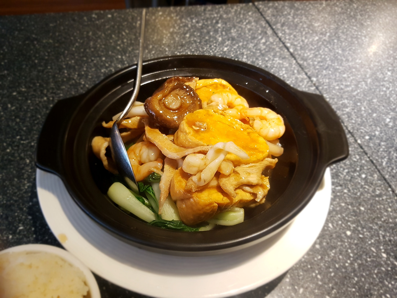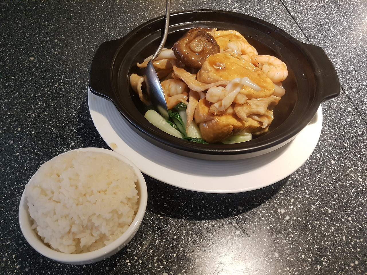 다른 메뉴는 못 먹어서 아쉽지만, 정말 환상적인 선택이었다. 달콤 짭조름한 소스를 바탕으로 모든 재료가 정말 신선했고, 특히 오통통한 새우의 식감은 쫄깃하기까지 할 정도로 탱글탱글했다. 두부도 속은 부드러우면서도 표면은 쫀쫀하니 씹는 맛이 좋았고, 청경채와 버섯 등 채소들도 어찌나 이리 싱싱하던지. 게다가 양은 무지막지하게 많다. 이렇게 좋은 음식의 가격이 밥, 레몬티까지 합쳐도 단돈 HK106. 두 배를 더 내라고 해도 기꺼이 낼 만한 수준이었다.