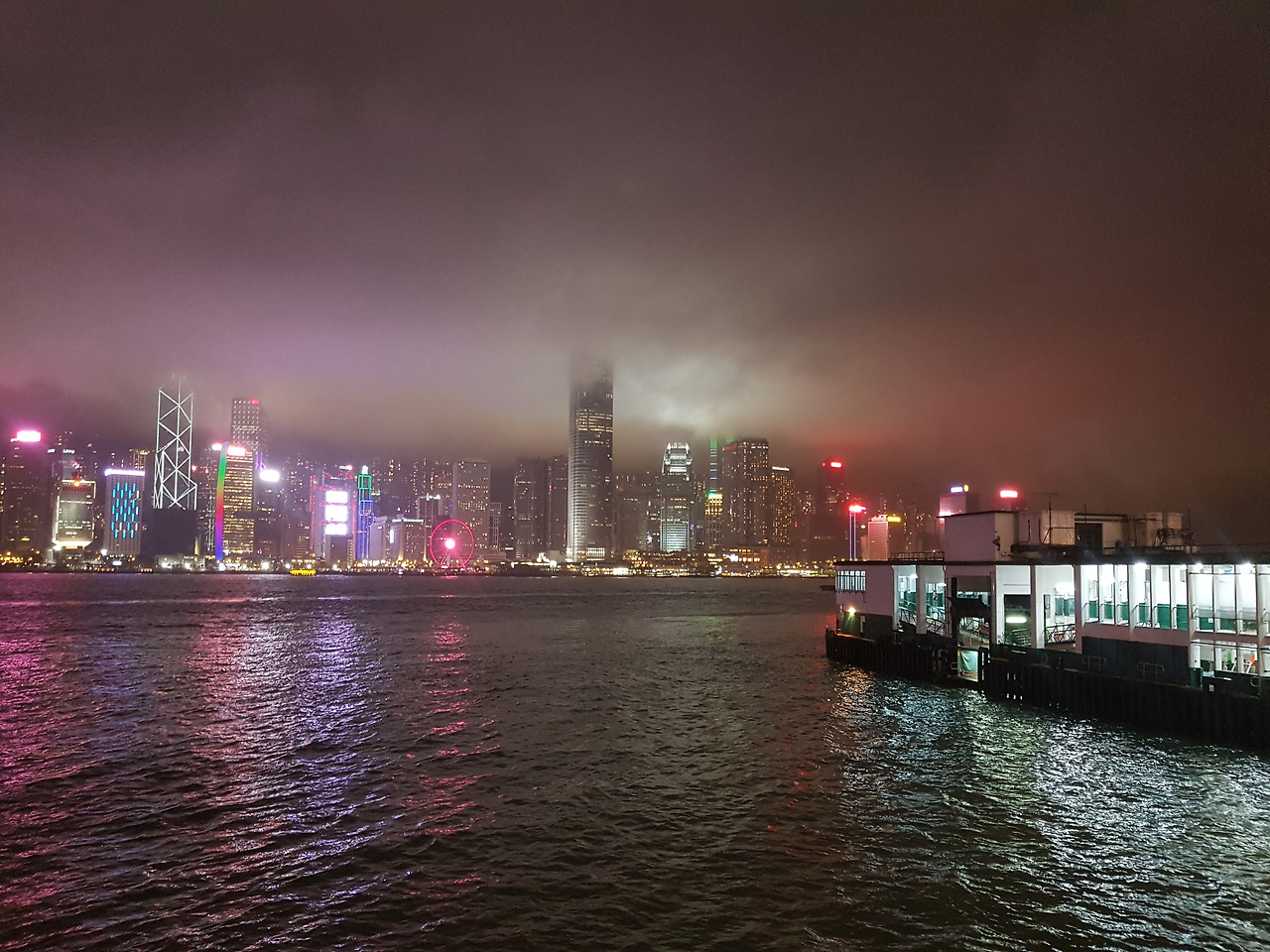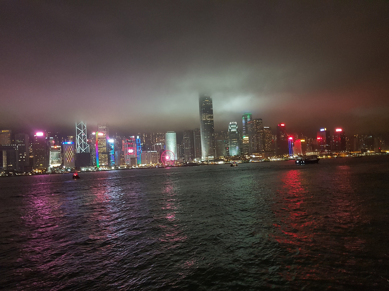 아래로는 구룡 반도에서 바라본 홍콩섬의 야경 가득. 한국에서도 이런 야경 정도는 익숙하다지만, 홍콩만이 보여줄 수 있는 야경이 존재한다고 생각한다. 안개가 좀 자욱하게 끼어서, 영화 「반지의 제왕」에 나오는 '사우론의 탑'을 보는 듯한 느낌도 들었다.