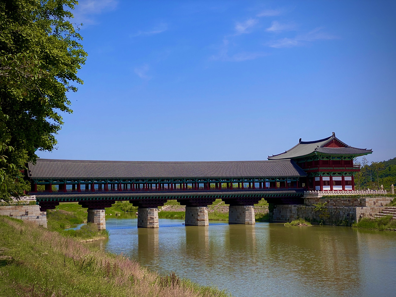 남천을 가로지르는 월정교는 꽤 큰 다리다. 기와지붕의 긴 회랑 같은 모습의 월정교 내부를 달리는 기분은 정말이지특별하다. 원효대사와 요석공주의 사랑이야기의 배경이 되었던 서라벌의 핫플레이스, 월정교에서 달리기를 하다니... 잠시나마 타임슬립 드라마 속의 주인공이 된 기분이다.