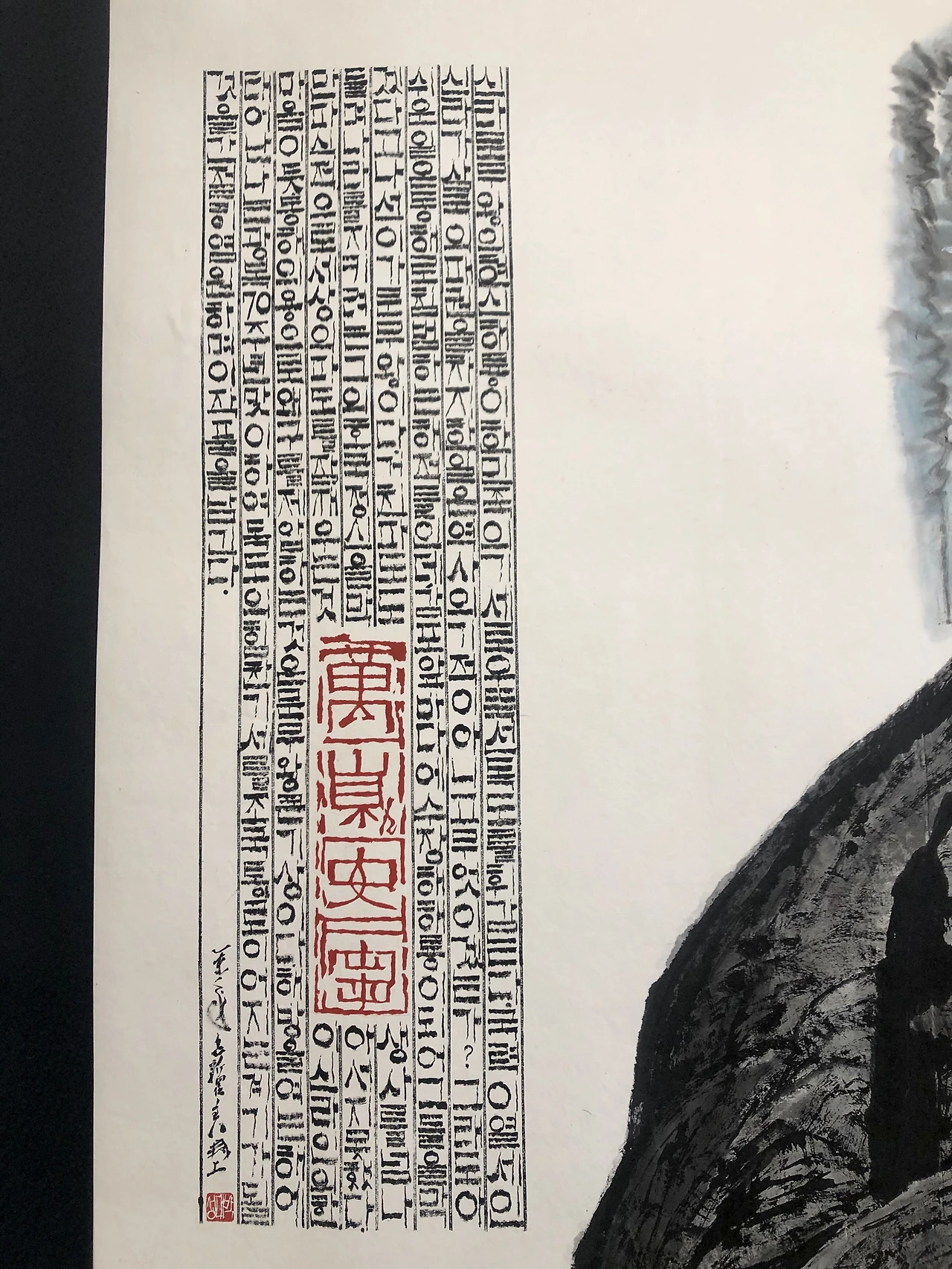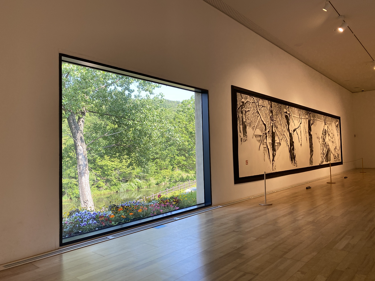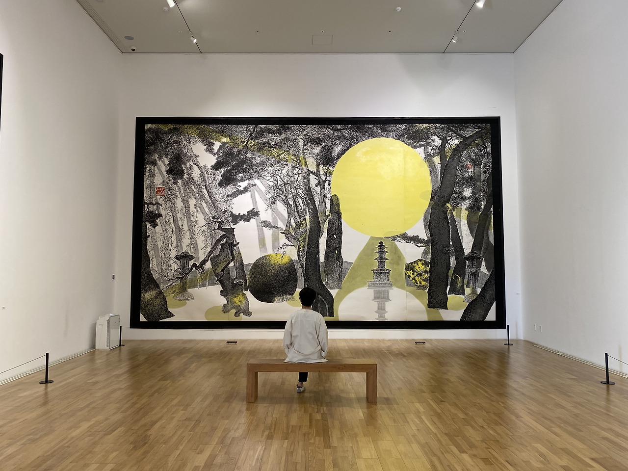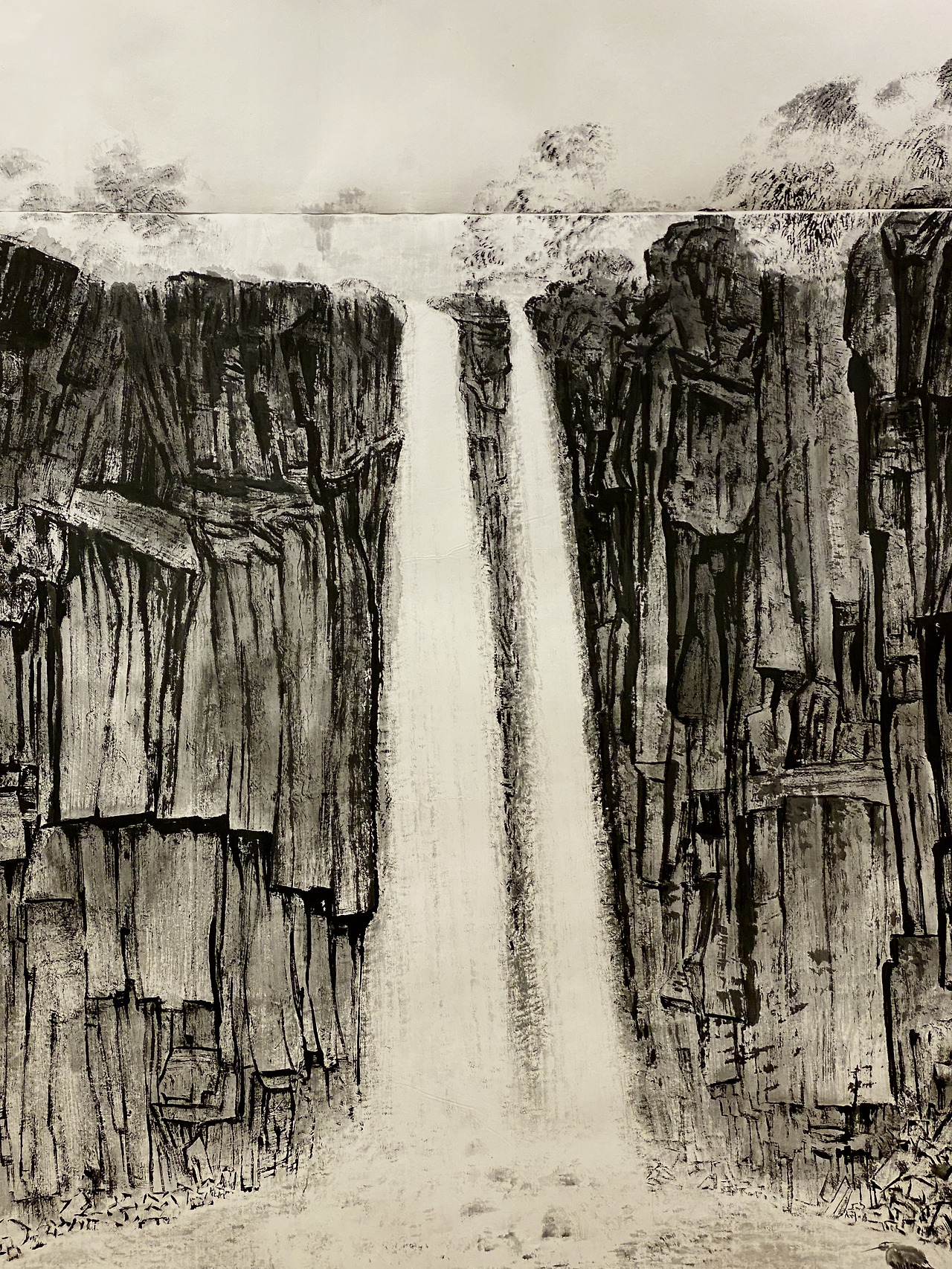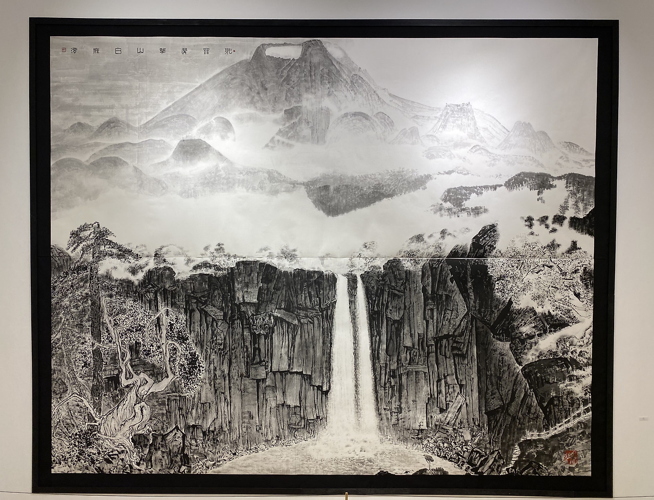 입을 다물 수가 없었다. 연이은 대작들을 보고 있노라니 이곳에선 잠시 턱을 내려놓아도 좋다 싶다. 빠진 턱으로 종이와 먹만으로 이걸 그렸다고??를 앵무새처럼 되풀이했다. 자연이 주는 감동을 그대로 옮겨왔다. 미술관에 전시된 소개글을 보고 안 사실이지만. 작가는 이걸 한 팔로 그렸다.