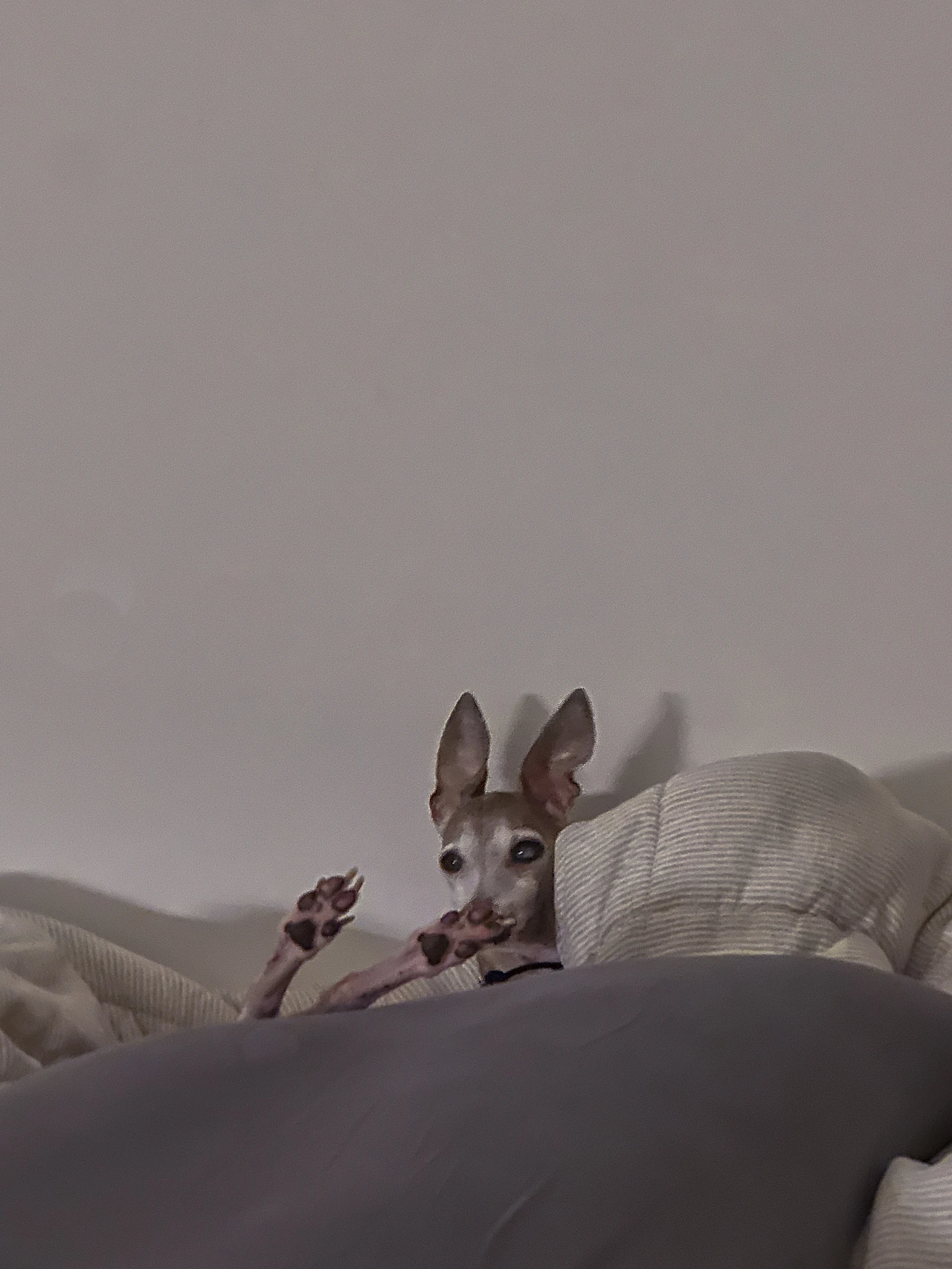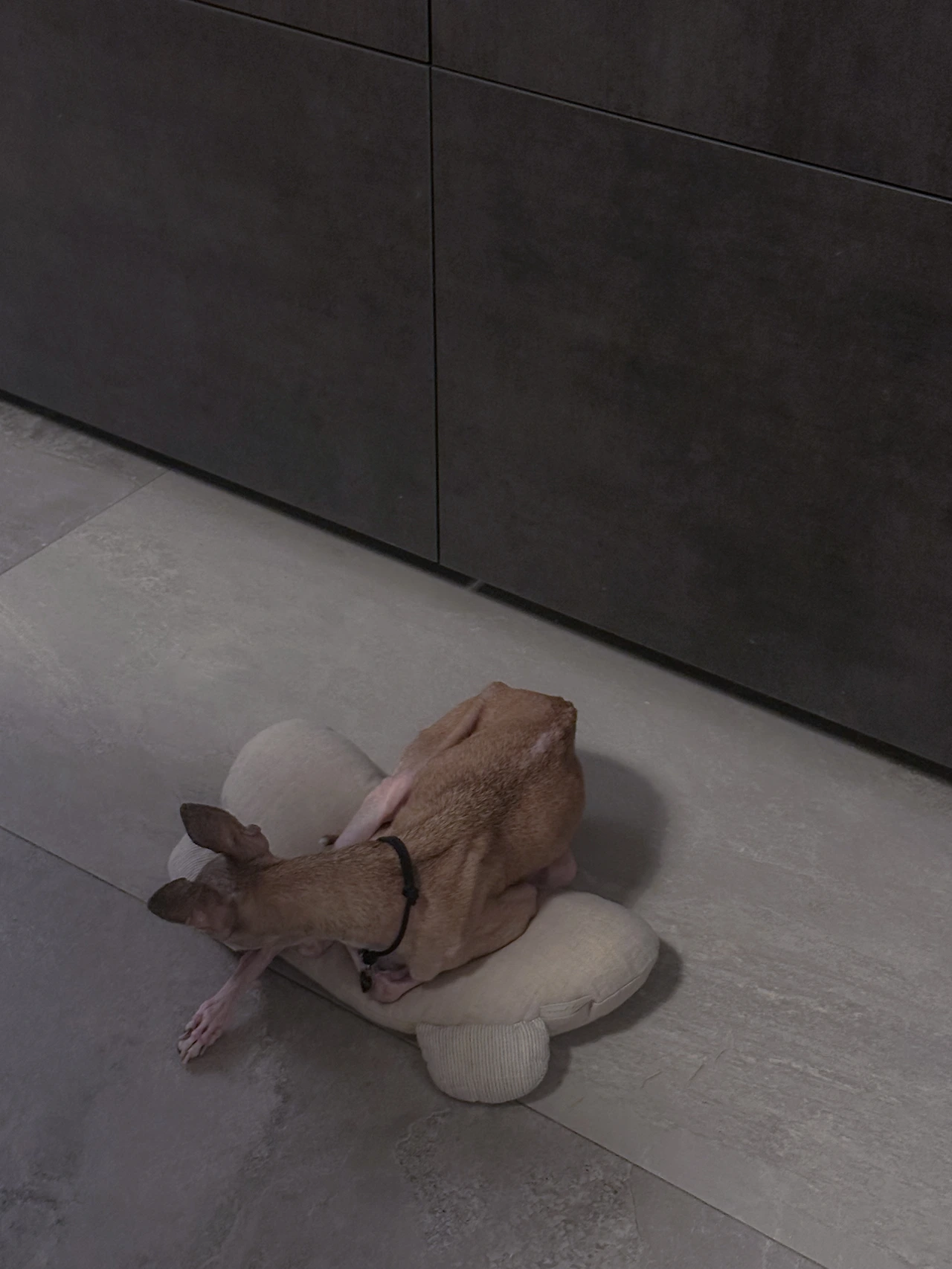 털도 지방도 없는 이탈리안 그레이하운드들에게는 제일 인기가 없는 곳인데,