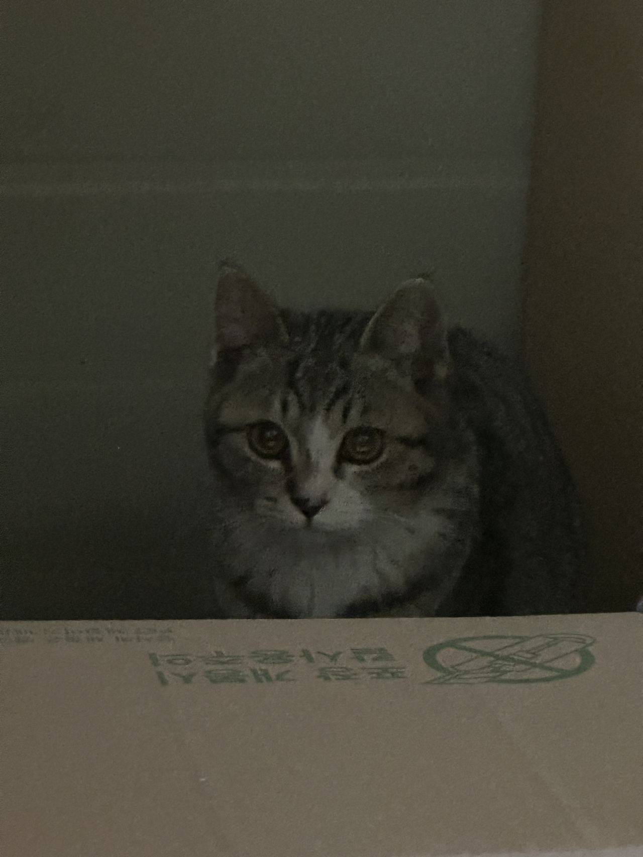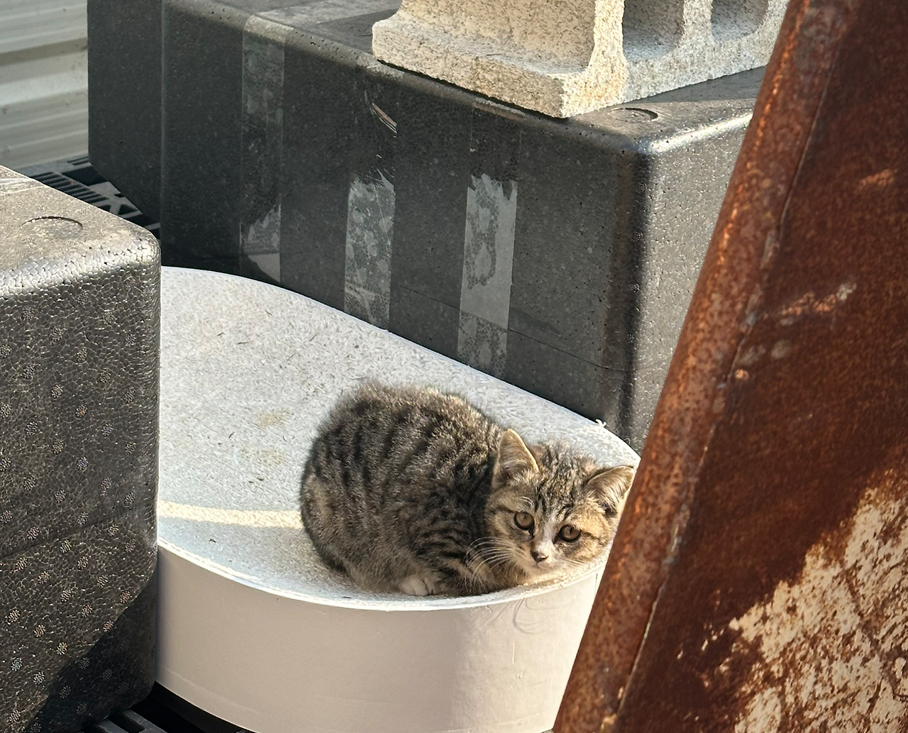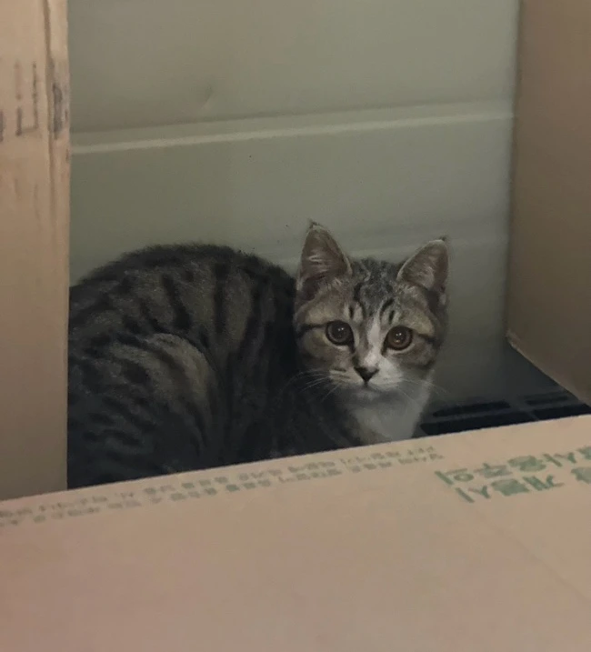 바깥 고양이들에게 밥을 주고 돌아왔을 때도 여전히 같은 자리에서 나를 보고 있었다.