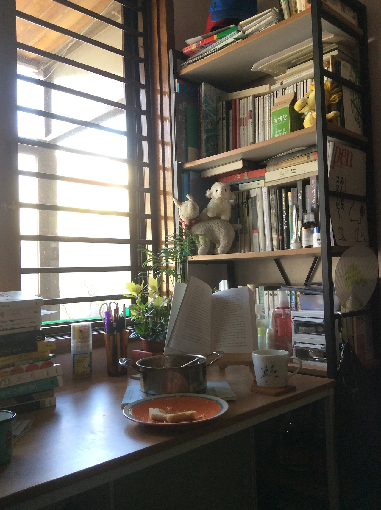장미가 기본적인 부엌 살림들은 가지고 왔기 때문에 특별히 더 사야 할 것들은 없었다. 덕분에 나는 필요없는 물건 두 가지를 더 주문했다. 살풍경한 형광등 불빛 대신 노란 빛으로 방을 밝혀 줄 철제 클램프 스탠드는 전구 포함 2만 2천원이었고, 판매량이 제일 많은 2.0 채널 컴퓨터 스피커도 2만원 남짓이었다. 사실 책장도 책을 들고 나오지 않았으면 필요하지 않았을텐데 집을 나오며 굳이 책을 택배로 부쳤다. 공간이 없는 사람에게는 사치스러운 선택이었다. 그리고 그때 내겐 그런 사치가 필요했다. 내가 좋아하는 것들을 내 곁에 두는 사치.