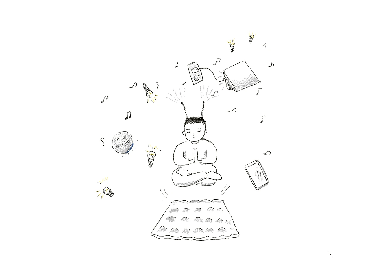 지금 모습을 조금만 더 자세히 설명하자면 좌 아이패드, 우 아이폰을 놓고 무릎엔 로지텍 무선 키보드를, 엉덩이에는 공기를 주입한 엠보싱 방석을 깔고 앉아 스타벅스 크리스마스 플레이 리스트를 (스타벅스 풍의 크리스마스 음악인지는 모르겠으나) 알렉사로 듣는 중이다. 거실의 이 노란 조명도 아마존 스마트 플러그로 연결된 덕에 코로나로 불어난 궁둥이를 떼지 않고도 불을 껐다 켰다 할 수 있다. 이렇게 쓰고 보니 꽤나 스마트한 라이프를 영위하고 있는 것 같지만, “숨 막힌다” 는 문장이 먼저 떠오르는 건 왜일까. 지금 내가 앉아있는 반경 일 미터의 공간을 묘사했을 뿐인데 벌써 나열된 브랜드 이름이 몇 개야... 산속에서 자연인처럼 살고 싶은 생각은 1도 없고 물건을 쓰는 순간 브랜드에서 자유로울 수 없지만, 그리고 그런 삶을 추구하는 것도 아니지만, 막상 생활의 아주 작은 단면을 영위하게 해주는 브랜드와 기술들을 문자로 나열해 보니 생각보다 어마어마하다. 이것들이 나에게 편의를 주고 있는 도구일 뿐일까, 도구에 주객이 전도된 구속된 삶을 살고 있는 것일까. 구속이라면 자유가 주어졌을 때 그 삶은 지금보다 행복해질까. 아니지, 구속이라는 단어는 너무한 것 같다. 누가 시킨 것도 아니니 ‘자발적 구속’이라 정정해야겠다. 그렇다면 자발적 구속에 길들여져 물건과 기술이 ‘나’를 압도하는 삶을 살고 있는 걸까. 아날로그 인간이라 스스로를 칭했지만 그런 인간치고 온갖 디지털 기기들을 쓰고 있지 않은가! (변명이라면 스마트 플러그를 쓴 지는 고작 일주일 정도 되었다.) 조금이라도 날 편리하게 할 제품들, 브랜드들을 원하면서도 나를 둘러싼 모든 물건들로부터 자유로워지고 싶은 마음. 기술의 편리에 의존하면서도 완전한 ‘오프라인’에 대한 로망을 품고 사는 매일. 자연스러우면서도 아이러니하고, 아이러니할 것도 없이 당연한 일인 듯하다.
