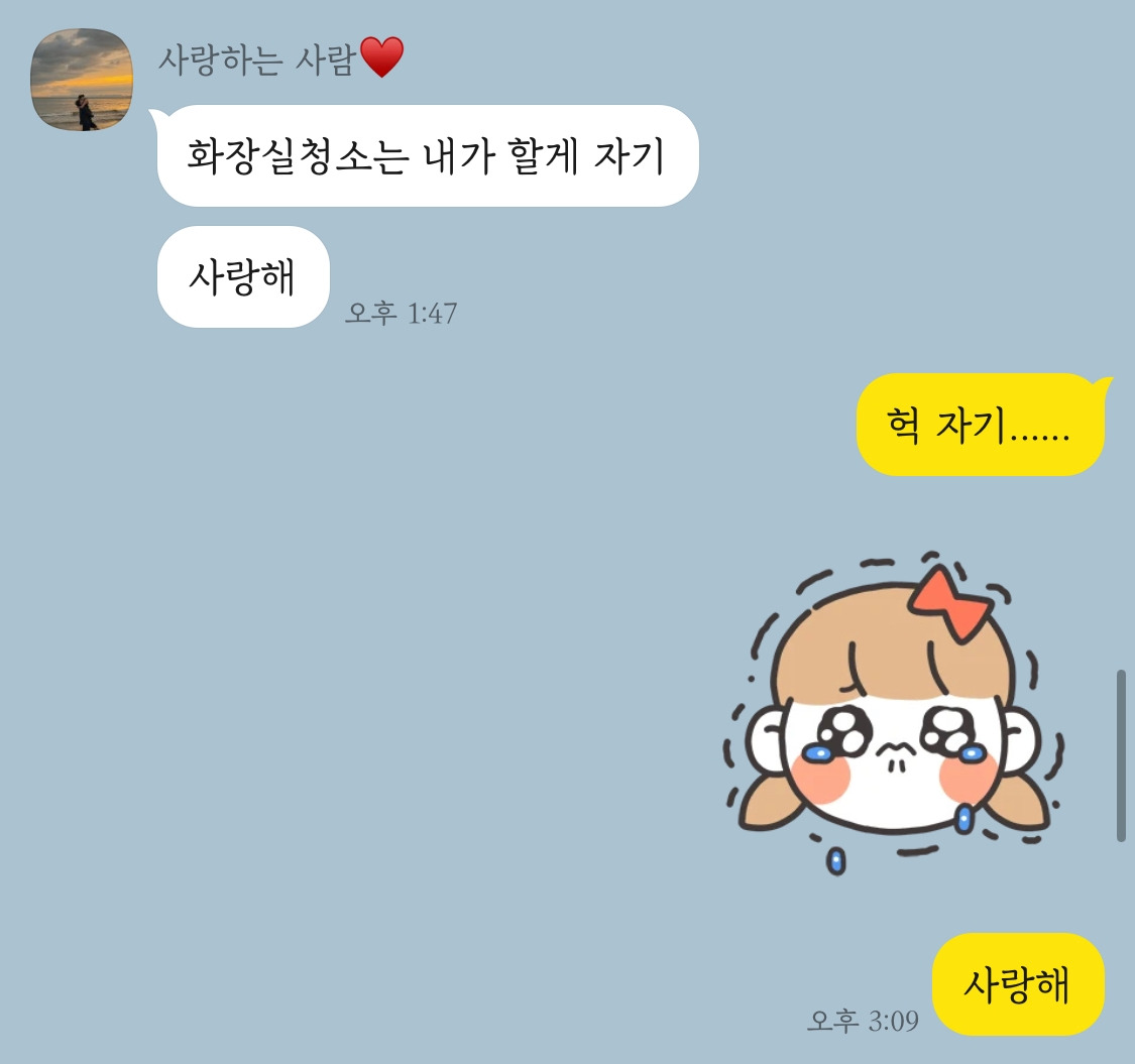 그래서 지금부터 조기교육을 시키는 중이다. 내가 한 차례씩 청소에 대한 깨달음을 얻을 때마다 연인에게도 공유를 해 주고 있다. 그리고 우리 집 화장실 청소 담당도 남자친구로 정했다. 하하하