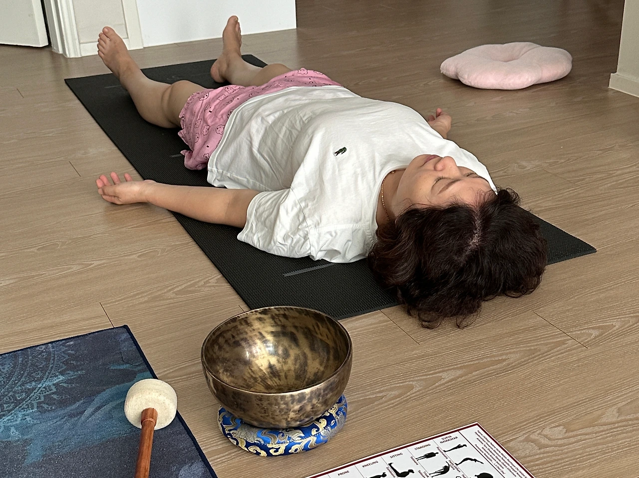 엄마가 사바아사나와 함께 짧은 명상에 빠지길 바랐다.