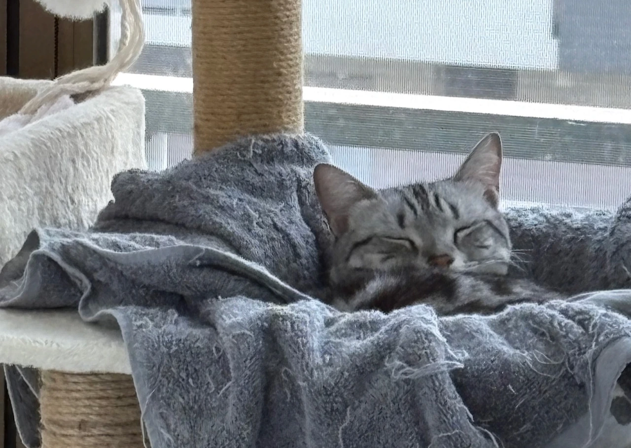 사료도 든든하게 먹었고, 푹신한 침대에 누우니 잠이 솔솔 오네.