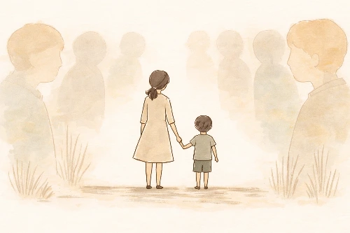 사람들 사이에서, 어떻게 해도 자연스럽지 않은 엄마였다.