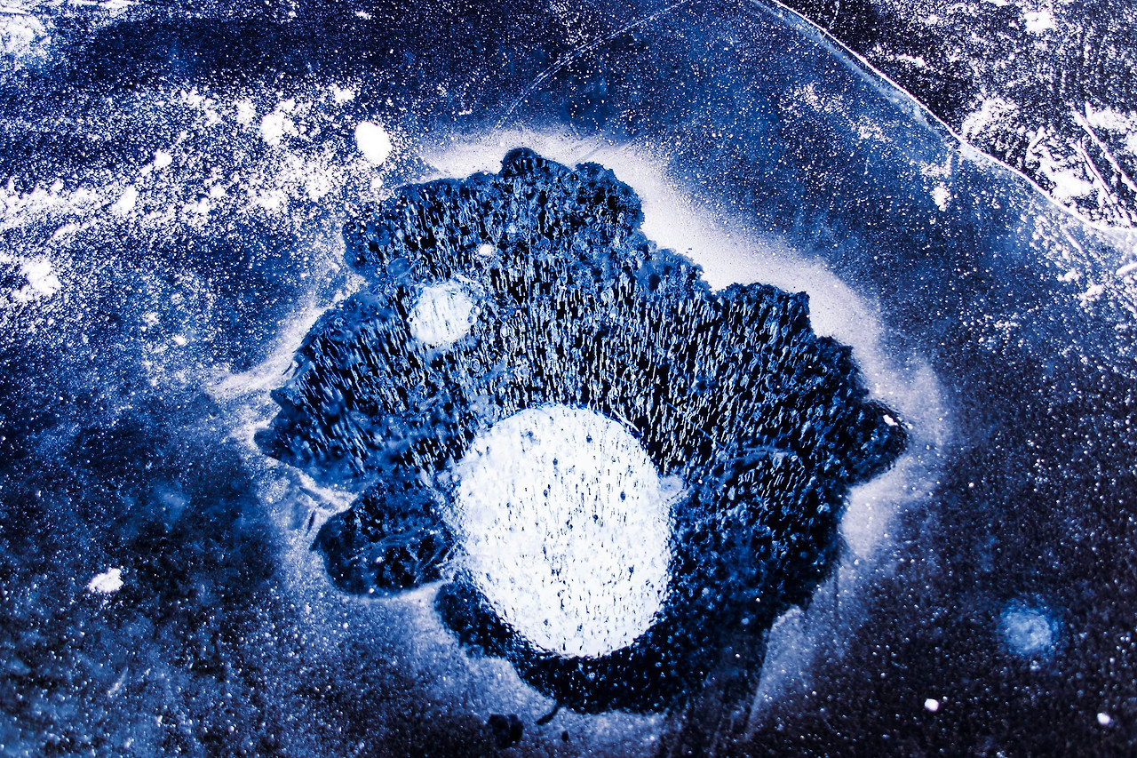 호수 안에서 얼은 물방울들. 지구의 것이 아닌 듯한 느낌이다.